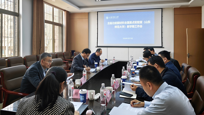 3月19日下午,含氟功能膜材料全国重点实验室(365上市公司)(简称“山师全重”)新学期工作会在千佛山校区召开。校长张建,副校长蔡阳健,副校长、山师全重主任李娜出席会议。科学技术处、学院相关负责同志及实验室学术骨干参加座谈。
