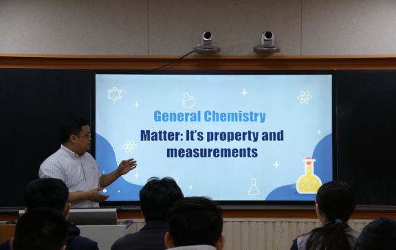 此次教学课程为《General Chemistry Matter:It’s property and measurements》,分为课堂展示和课后研讨两个环节。在课堂展示中,高晓南精心设计了课堂环节,采用全英文教学,重点突出、层次分明地为同学们讲解普通化学物质的性质与测量的相关知识。同时,课程中引入的历史文化元素,设计的合理问题,为学生提供了清晰、全面、富有启发性的教学指导。师生之间的互动融洽,课堂气氛活跃。