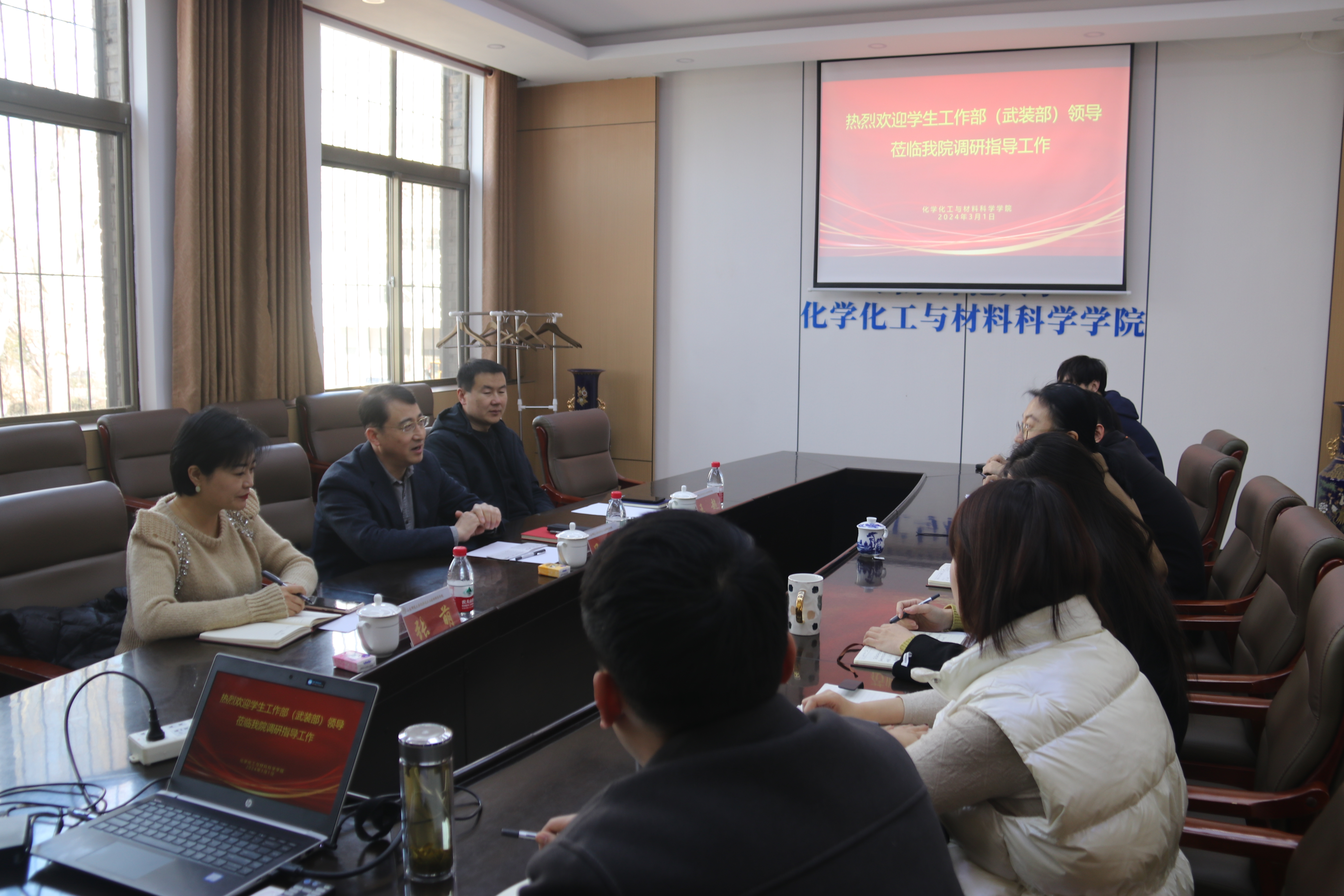 3月1日下午,学生工作部(武装部)部长吕晓勇,副部长王超、张萌来我院调研指导工作,对学院新学期学生工作亟需解决的问题困难进行摸排调研。学院党委副书记魏宁,团委书记、学工办主任房超及各年级辅导员参加会议。