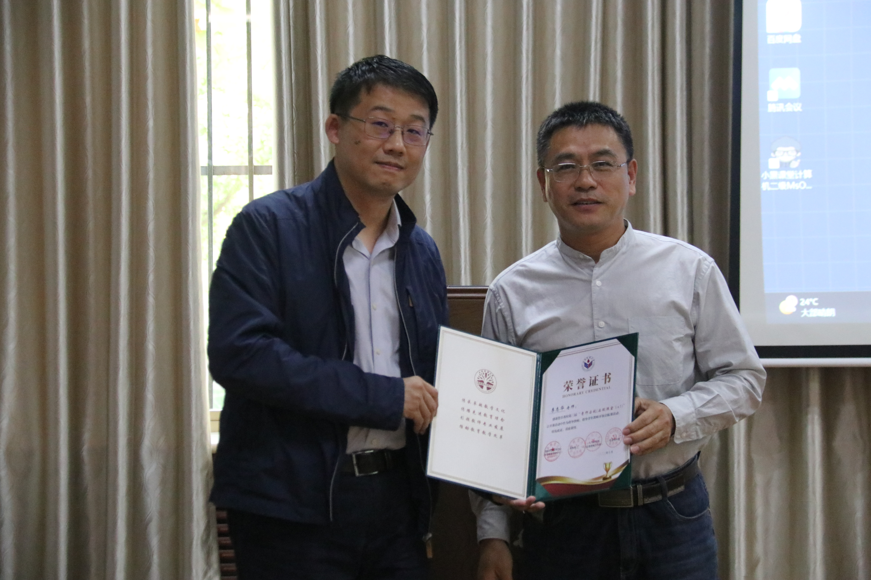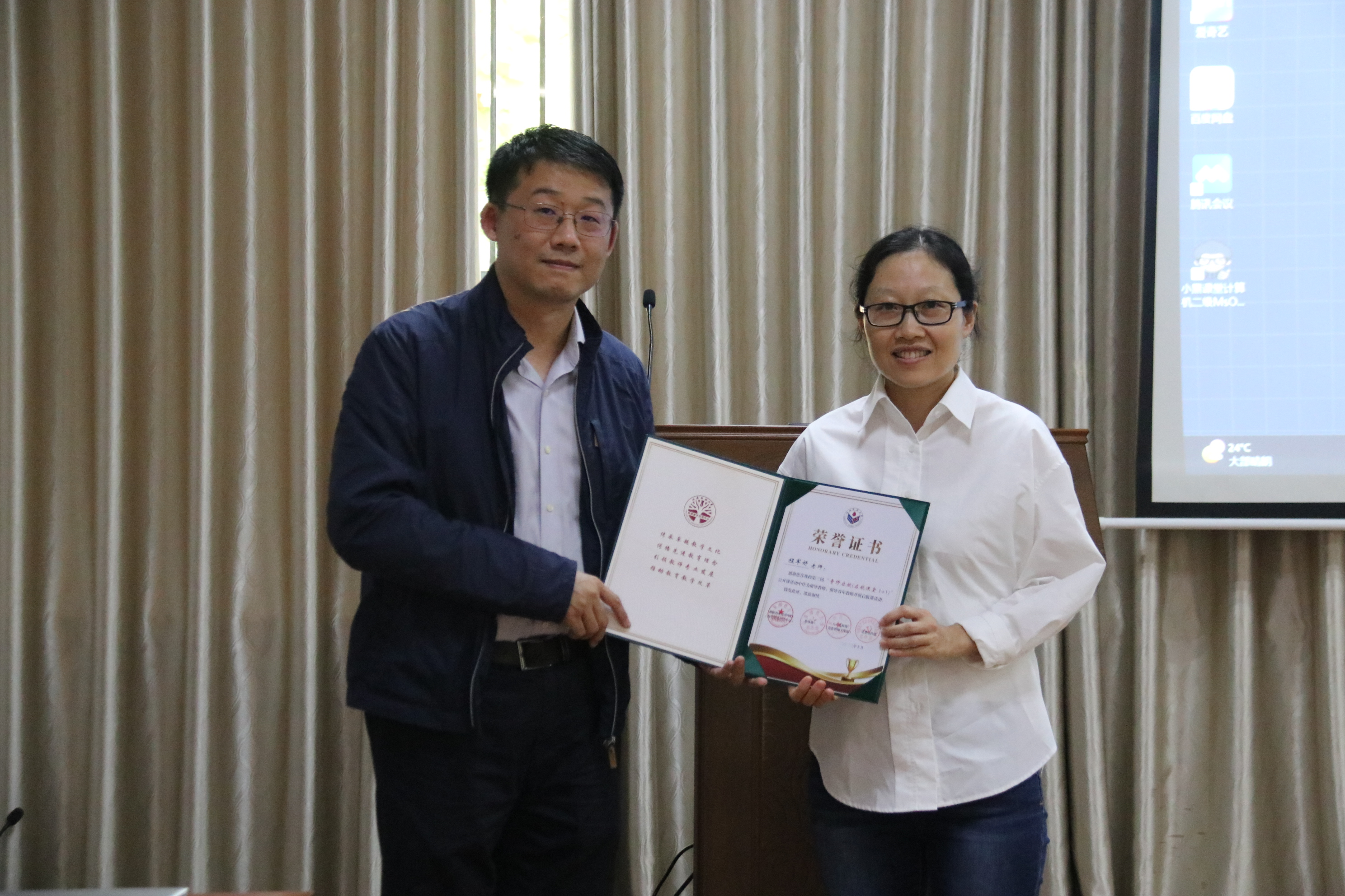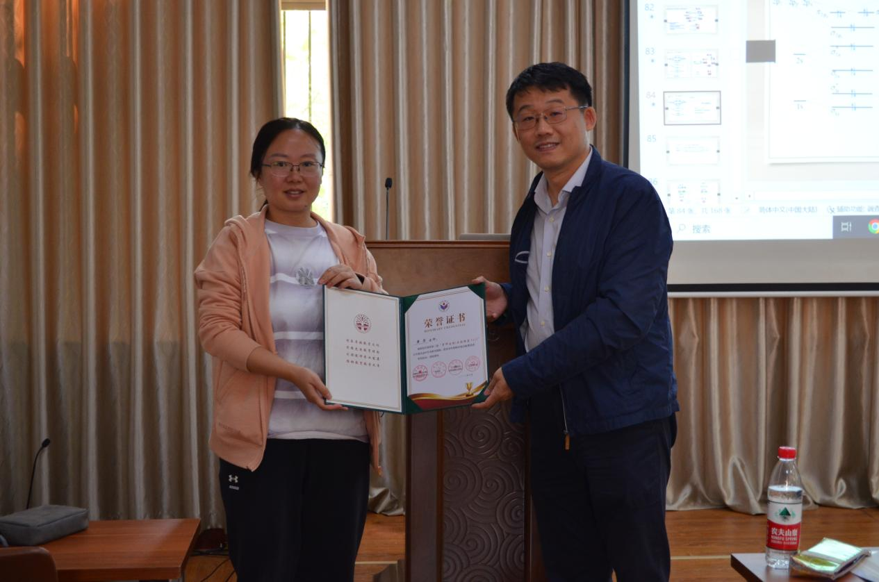 在课后研讨环节,各位督导专家和指导老师从课程准备、教学内容安排、和教学环节设计等方面,对主讲教师给予了积极的评价,一致认为两位老师教学思路清晰,讲解明确富有条理,动画演示和板书相结合,教学方式多样且灵活贴切,课堂互动好,学生参与度高,特别是与教学内容相符的课程思政的加入使得教学很有新意。活动最后,耿琰院长为黄芳老师、邢洋洋老师、李志华老师、程军妍老师、马慧超老师颁发荣誉证书。