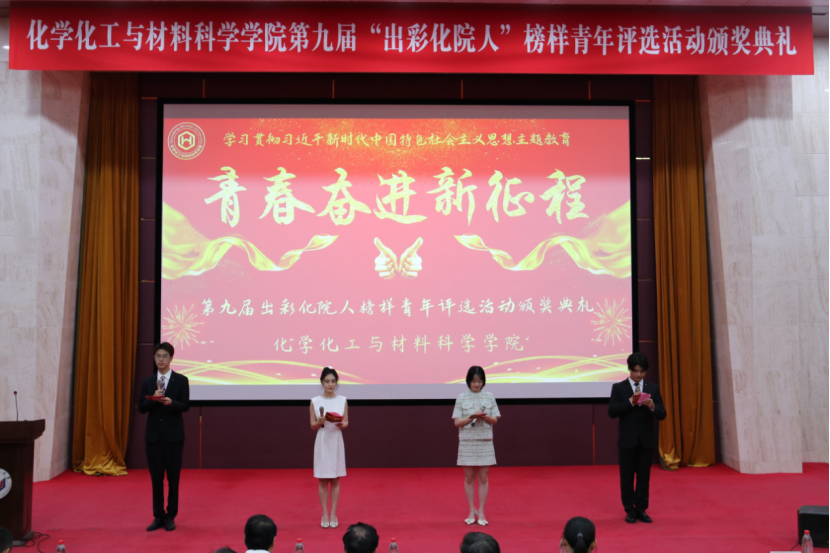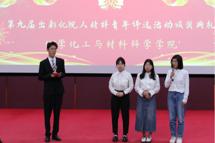就如歌中唱道,“为誓言击掌,接下时代的一棒”。今日的榜样青年昂首阔步走向未来,手中接下的不仅是奖章,更是接续奋斗的接力棒。此次“出彩化院人”榜样青年评选活动颁奖典礼,为化学院学子树立了良好的榜样及学习目标,有效地引导化院学子向榜样看齐,学习榜样精神;同时,进一步提高了化院学子的政治素养、家国情怀,激励着青年学子刻苦学习专业知识,在全面建设社会主义现代化国家新征程上不懈奋斗。
