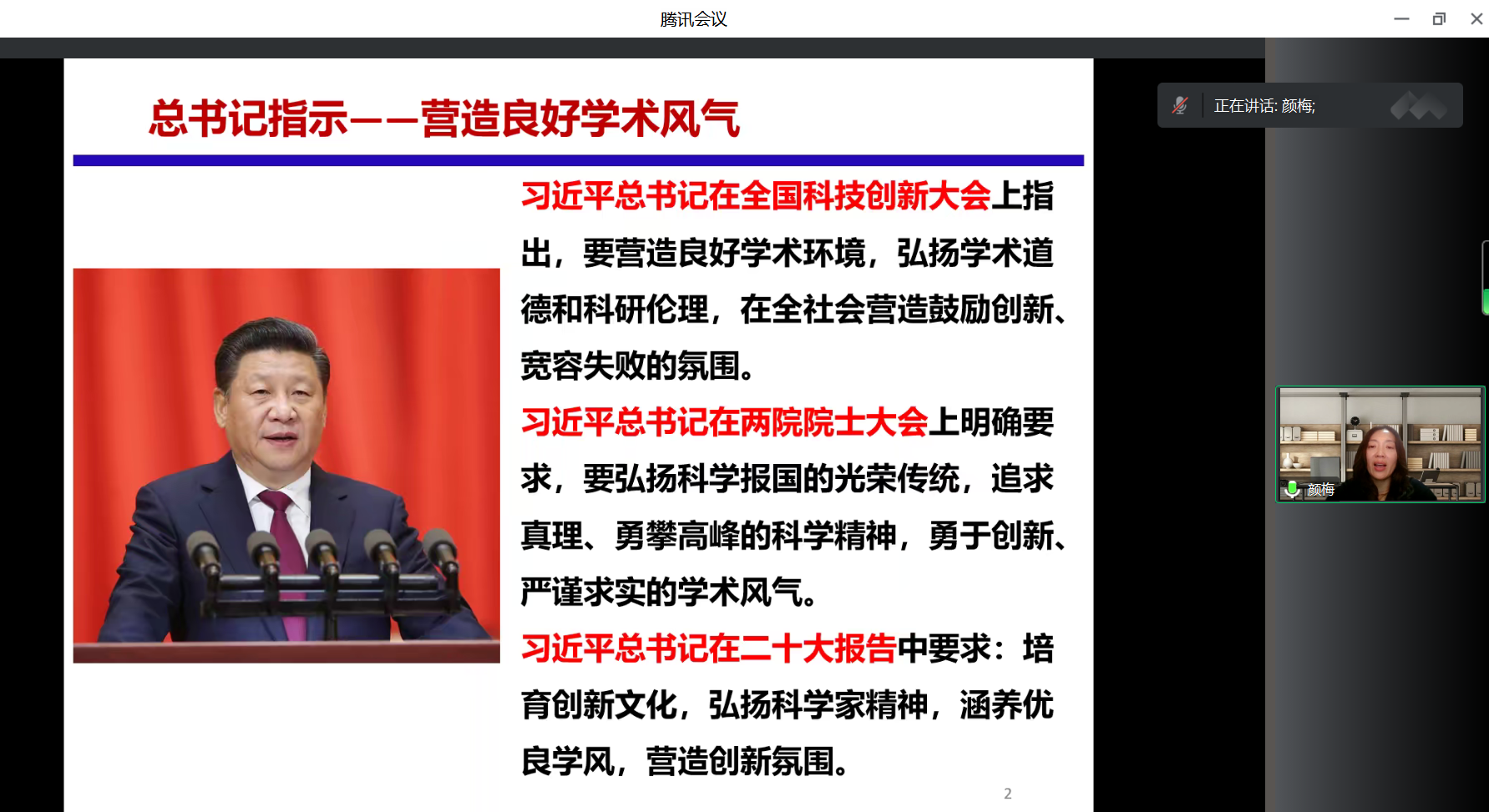 为深入贯彻党的二十大精神,落实党中央、国务院、教育部对科研诚信与作风学风建设的部署要求,进一步加强科研诚信建设,弘扬求真务实、严谨自律的学术精神,2023年3月17日,学院邀请济南大学科技处处长、化学化工学院院长颜梅教授通过线上会议的方式为学院师生作主题为“科研诚信与学风建设”的宣讲报告,报告由执行院长李娜教授主持,学院教师和研究生参加了此次报告。