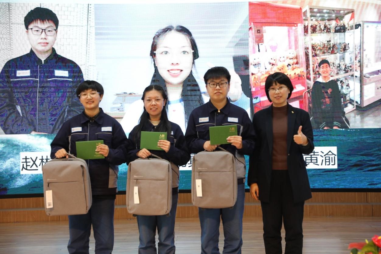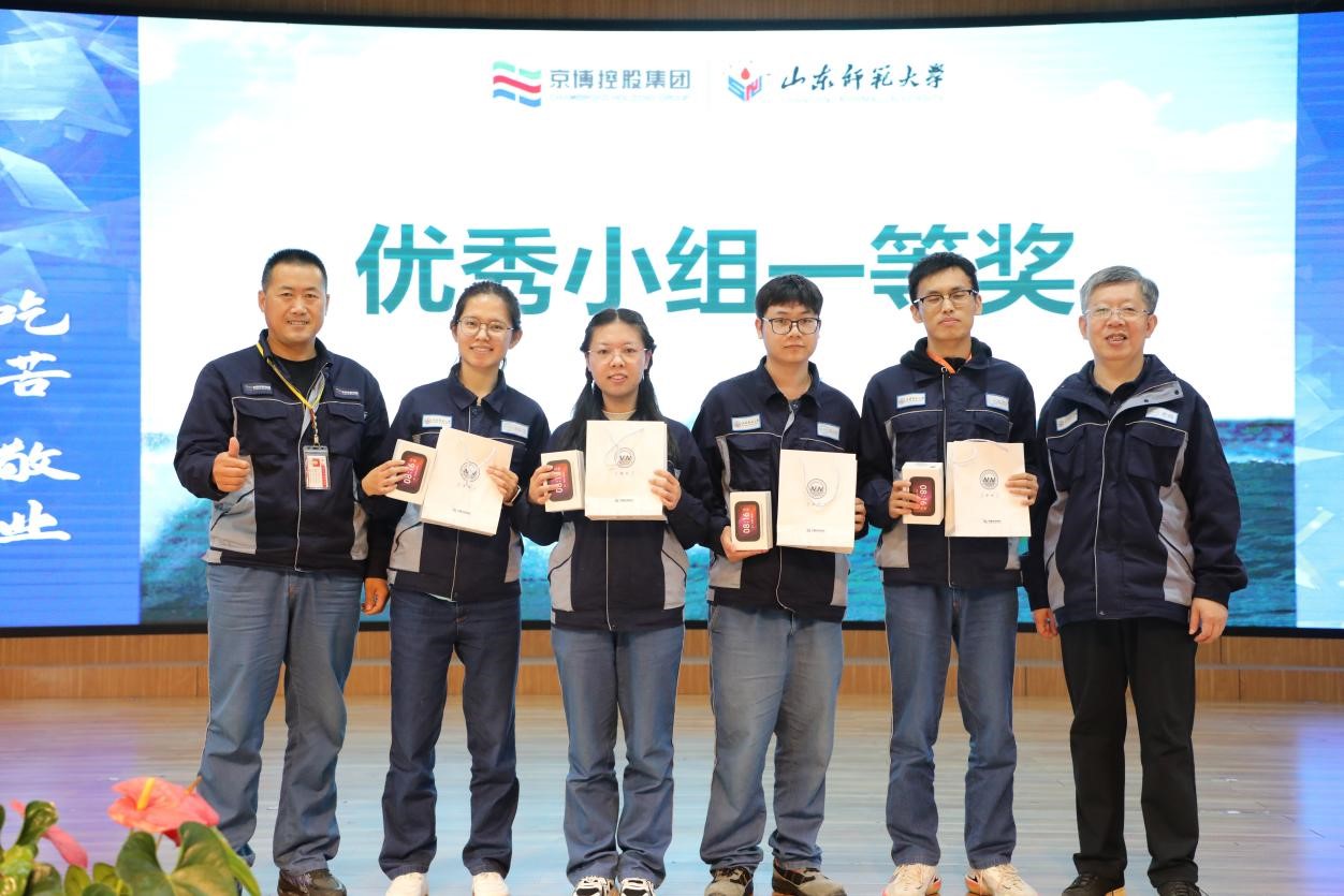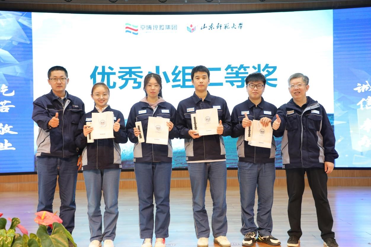 由各车间初筛及推荐,化工H车间和化工D车间的6个课题在实训工作总结会上进行了学习成果展示汇报。经过紧张的角逐,最终在化工H车间实习的“生化物器队”《提高发泡剂中环戊烷含量》获得优秀小组一等奖,在化工H车间实习的“氢空万里队”《提高PSA氢气回收率》获得优秀小组二等奖,在化工D车间实习的“蒸蒸日上队”《降低丙烷丙烯分离塔3.5 MPa蒸汽用量研究》获得优秀小组三等奖。另外,根据学生在实训期间的实际表现,有3名同学得到了京博集团颁发的“入职绿卡”,届时凭“入职绿卡”可到京博控股集团及其旗下产业公司就职。