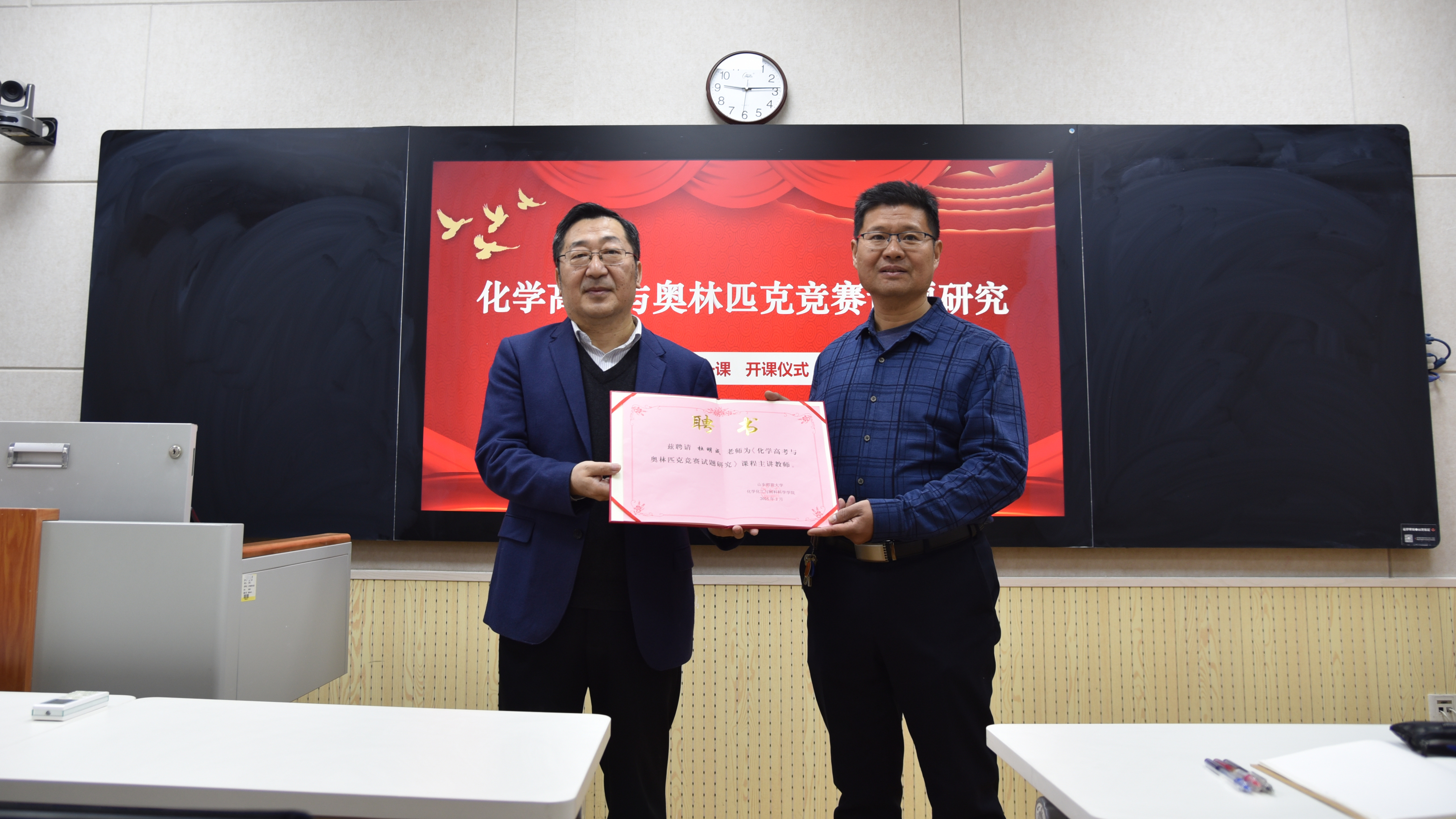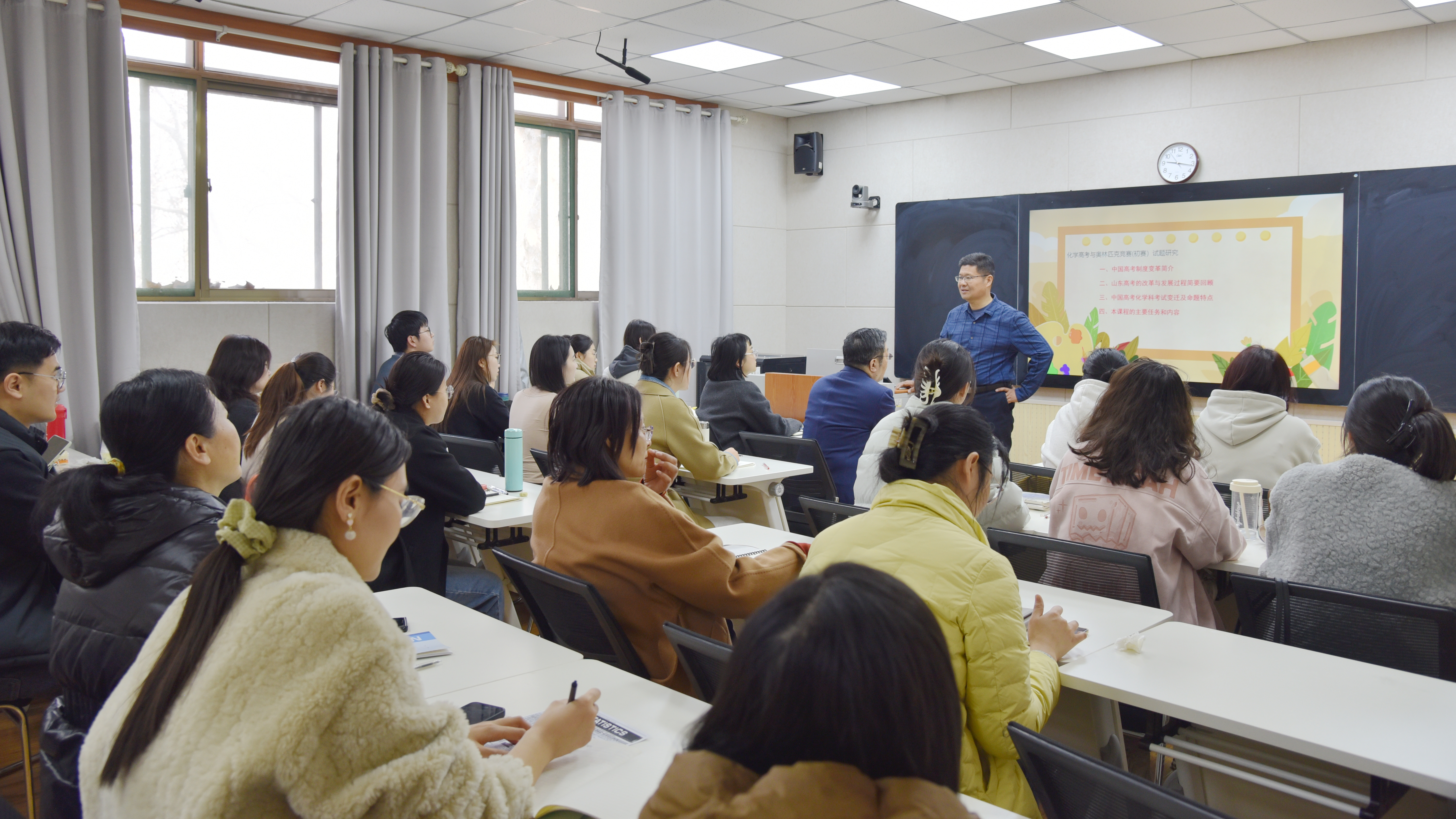 2月27日上午,《化学高考与奥林匹克竞赛试题研究》开课仪式暨首场课程讲座于1244教室举行。本课程由365上市公司附属中学正高级教师、济南市化学学科带头人杜明成老师主讲,化学教学论教研室毕华林教授主持开课仪式。