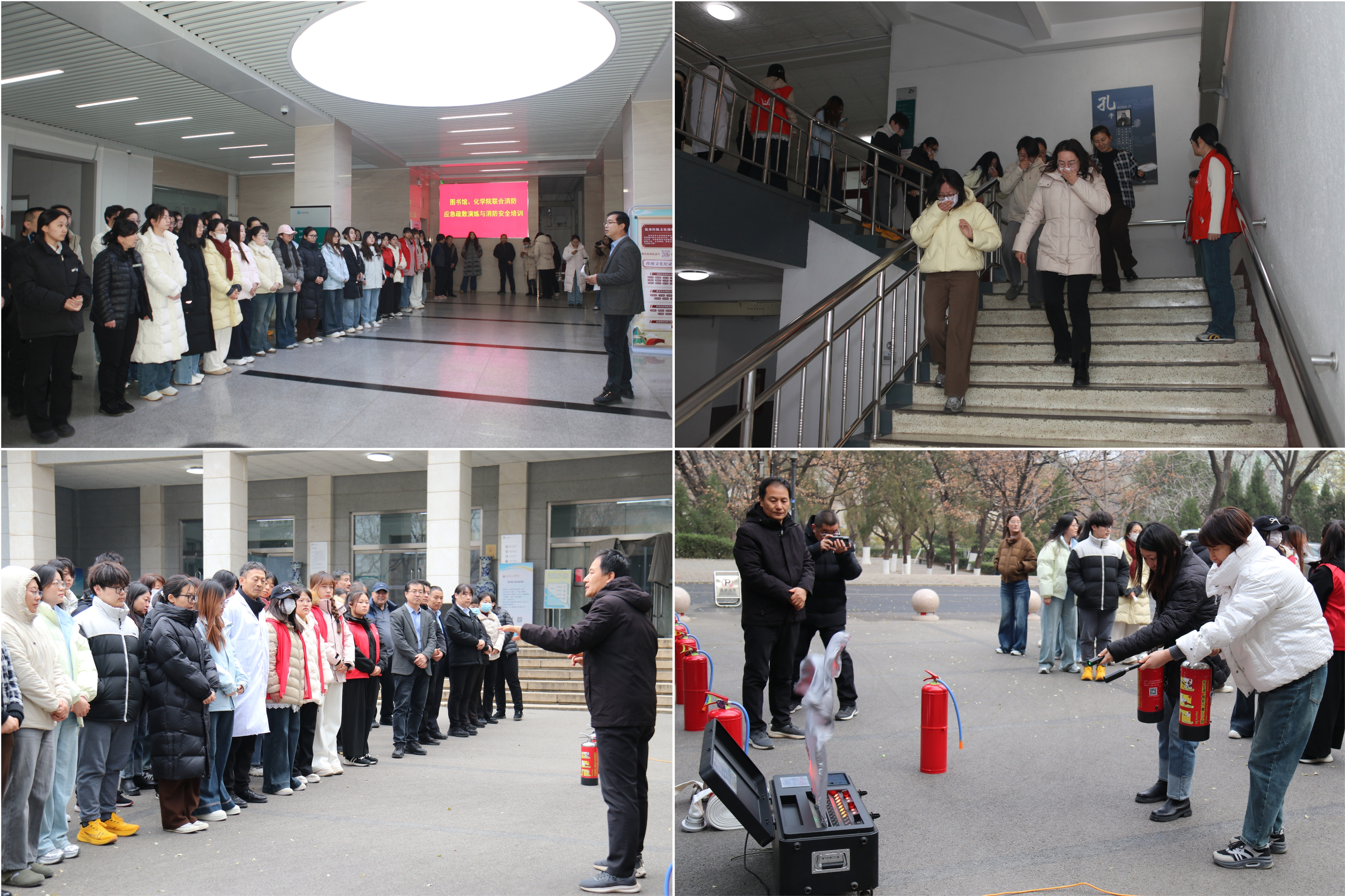 12月11日上午,为切实提升师生消防安全应急处置能力、普及消防安全知识、筑牢校园安全屏障,学院联合图书馆在千佛山图书馆开展了消防应急疏散演练与消防安全培训。学校安全管理处副处长吕瑞全程参与指导,消防一科杨延辉科长进行现场教学。学院学术副院长孙传智,学院本科实验教学中心、党政办公室教师代表,图书馆教职工、物业人员、志愿者,学院研究生辅导员与研究生共百余人参加活动。
