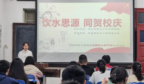 在2020级新生开学第一课上,学院党委书记王金山结合新冠疫情中00后医护人员的先进典型事迹,对同学们进行了爱国主义教育和使命担当教育。希望同学们从抗击疫情的先进典型事迹中感悟英雄楷模挺身而出的无畏精神,始终保持积极上进、不畏艰辛、报效祖国的理想信念。开展“党带团行一帮一”主题党日活动,此次活动通过讨论交流、解答疑惑、事例演说等方式,依托“青马”工程,有效发挥先进典型的榜样引领作用,激发青年团员担当作为意识,使之坚定理想信念,为实现中华民族伟大复兴中国梦不懈努力。组织学生以班级为单位,开展抗美援朝七十周年团日活动,通过观看战争纪录片,上台讲述英雄故事等,引导学生深刻学习践行抗美援朝伟大精神,不断内蕴自身的爱国情怀,构建良好的历史观、国家观,将实现中华民族伟大复兴的梦想内化于心、外化于行。举办2020级新生“饮水思源,同贺校庆”主题团日系列活动,通过开展校史知识竞赛,“我与山师的故事”演讲会,朗诵七十周年贺词、齐唱校歌、调查山师建筑的历史记忆等活动,来表达对母校的拳拳之心、殷殷之情。