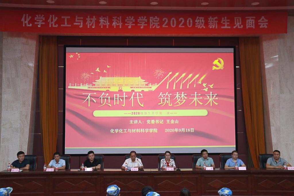 9月18日下午,为做好2020级新生入学教育工作,英国365上市公司于千佛山校区三号教学楼报告厅举办“不负时代,筑梦未来——2020级新生开学第一课”。活动邀请学院党委书记王金山为主讲人,执行院长李娜、副院长崔官伟、院长助理王栩、化学系主任孙传智、化工系主任张其坤、教师代表张卫等学院领导和教师代表应邀出席,学院2020级辅导员及全体本科新生参加。活动由学院党委副书记孙南主持。