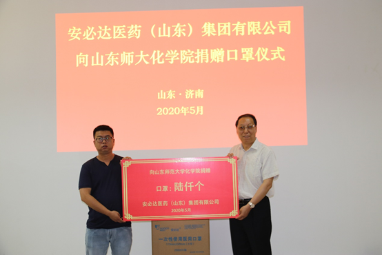 5月27日上午,我院制药工程专业2007级校友、安必达医药(山东)集团有限公司子公司山东奥能医疗科技有限公司总经理朱连连向学院捐赠防疫物资。学院党委书记王金山、副书记孙南参加了捐赠仪式。