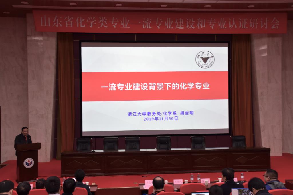 胡吉明教授作了题为《一流专业建设背景下的化学专业》的主旨报告,他指出了一流本科专业的内涵,并介绍了浙江大学专业建设的成果;