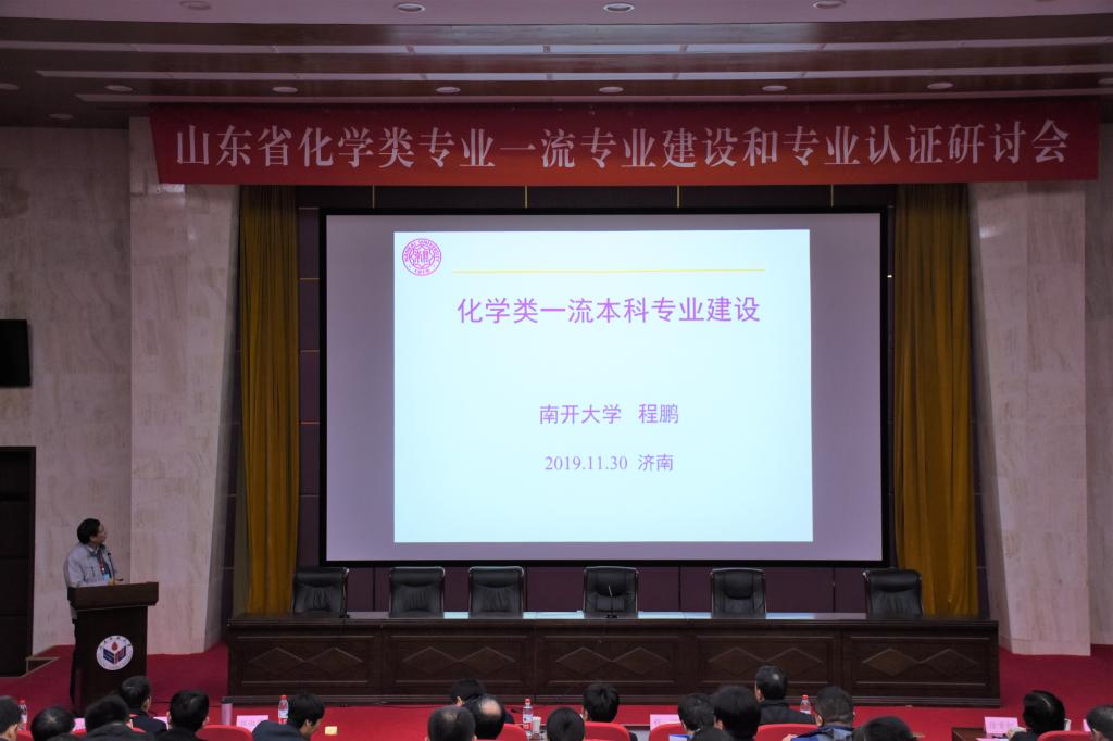 在会议报告环节中,程鹏教授作了题为《化学类一流本科专业建设》的主旨报告,他从一流专业建设定位、建设标准、建设原则、指导标准等方面分享了一流本科专业建设的前提和要求;