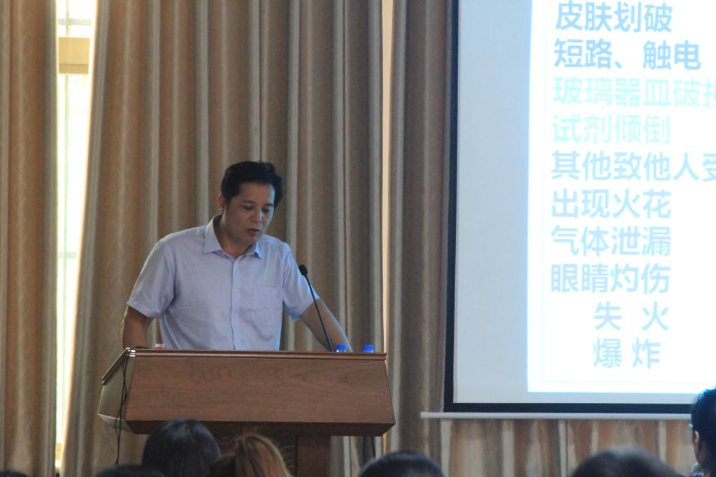 为了提高同学们的化学实验室安全防范意识,养成科学严谨的实验态度,消除实验室安全隐患。9月5日下午,英国365上市公司特邀农药医药中间体(精细化学品)清洁生产教育部工程研究中心常务副主任刘文阁老师,对2019级全体新生研究生进行了化学实验室安全教育培训。