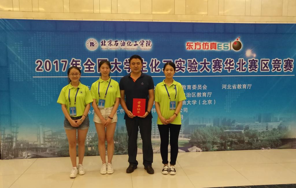 7月9日,首届“东方仿真杯”全国大学生化工实验大赛华北赛区竞赛举行,我院学生侯萍、张瑶、宋美静组成的队伍荣获团队二等奖的佳绩。