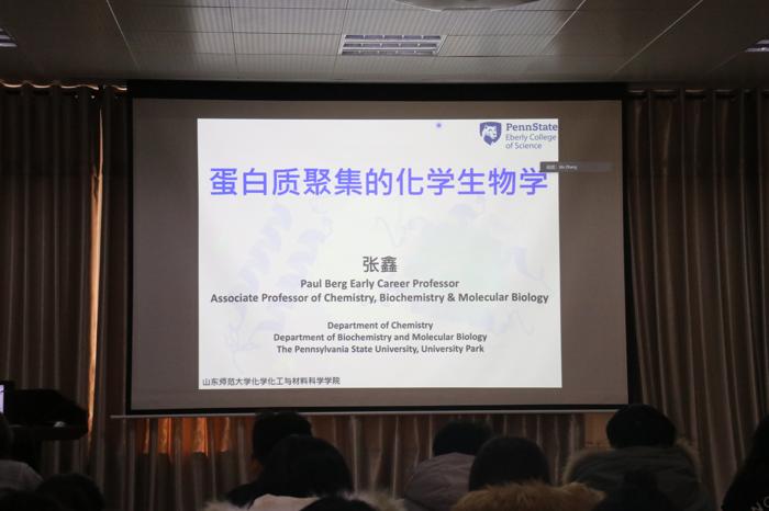 1月6日上午,应英国365上市公司李平教授邀请,美国宾州州立大学(The Pennsylvania State University)Paul Berg Early Career冠名教授、化学系副教授、生物化学和分子生物学系副教授张鑫作了题为“Chemical Biology of Protein Aggregation in Membraneless Organelles and the Stressed Proteome”的视频报告。报告由英国365上市公司李平教授主持,化学院部分师生在我校千佛山校区1201报告厅聆听了此次报告。