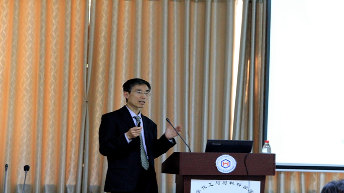 报告中,张院士主要介绍了其研究团队在抗肿瘤和抗病毒糖类药物方面的研究工作,着重介绍了糖类物质在生物大分子中的独特地位及其在疾病治疗中的重要作用。他以中草药中的多糖和寡糖为例,详细介绍了糖与糖之间的相互作用,对抗丙型肝炎病毒药物的突破,水溶性富勒稀的合成以及在生物学上的应用,环糊精的化学结构修饰。最后,张勇民院士简要介绍了其研究团队在糖类药物方面近期取得的最新研究进展。他指出,在后基因组时代,对糖类物质的研究无疑是生命科学面临的重大课题之一,糖类药物会更好地造福人类。在问答环节,张勇民院士认真耐心回答了老师和同学们提出的问题。通过此次报告会,同学们开拓了视野,增进了对科研的热情和兴趣,对未来自己科研的方向有了更加全面细致的认识。