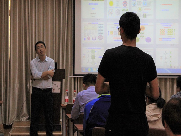 报告会上,兰教授主要从金属有机框架材料电催化剂和晶态材料光催化剂两个方面进行阐述。多金属氧酸盐简称多酸(POMs),具有优异的酸性和氧化还原能力,有望作为电极材料在能源的存储和转换中应用。但是,多酸催化剂的分离和循环再利用是目前难题之一。为解决上述问题,兰教授课题组将POMs和金属-有机框架(MOFs)结合起来,开展多酸基金属-有机框架(POMOFs)的研究,在合成POMOFs晶体材料的基础上进一步制备POMOFs复合材料及多孔碳基的纳米复合材料。其次利用多酸的氧化还原能力合成多酸/导电聚合物/石墨烯(PCG)多孔二维材料。将POMOFs晶体材料和PCG二维多孔材料及其衍生物作为电极材料或电催化剂用于电解水制氢、锂电池和钠电池等方面。为多酸基复合材料在能源转换中的研制和开发提供理论和实验依据。报告会现场气氛活跃,兰亚乾教授就多酸MOF晶体的结构、形貌控制和相关能源材料研究的发展动向等与现场师生进行了深入讨论,大家受益匪浅。
