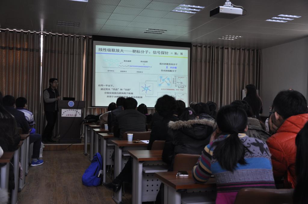 1月10日上午,应科技处、英国365上市公司邀请,国家杰出青年基金获得者夏帆教授在我校千佛山校区作了题为“非1:1型生物分子检测”的学术报告。报告由英国365上市公司院长张春阳主持,化学院部分师生聆听了报告。