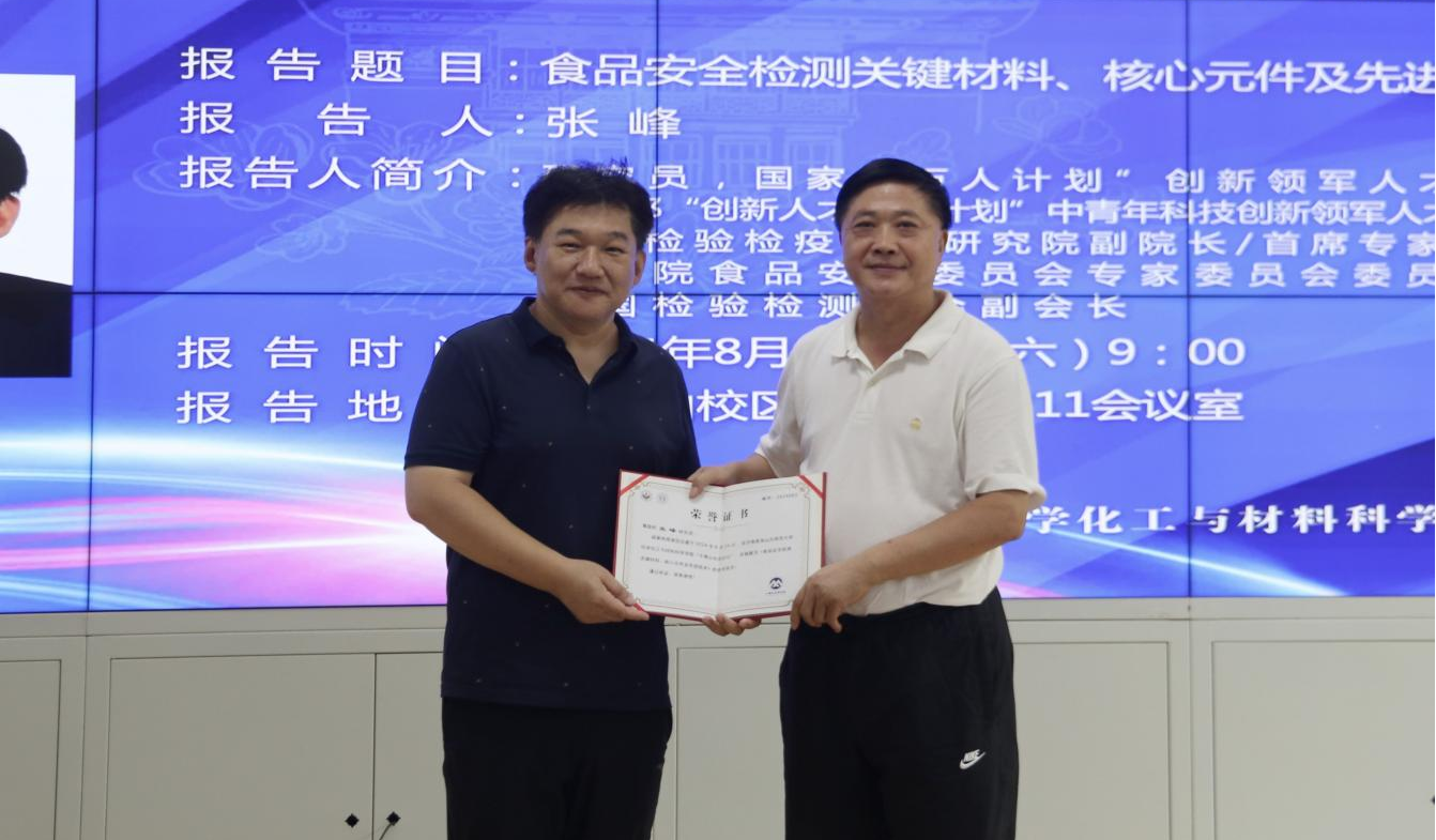 报告会结束后,与会师生踊跃提问,张峰对在场师生提出的相关问题给予了耐心细致的解答,现场气氛热烈。最后,唐波为张峰颁发荣誉证书。本次学术报告的顺利举办,不仅让学院师生对食品安全检测关键材料、核心元件及先进技术有了更加深入的了解,同时有效开拓了学院师生的学术视野,激发了学院师生的科研热情。