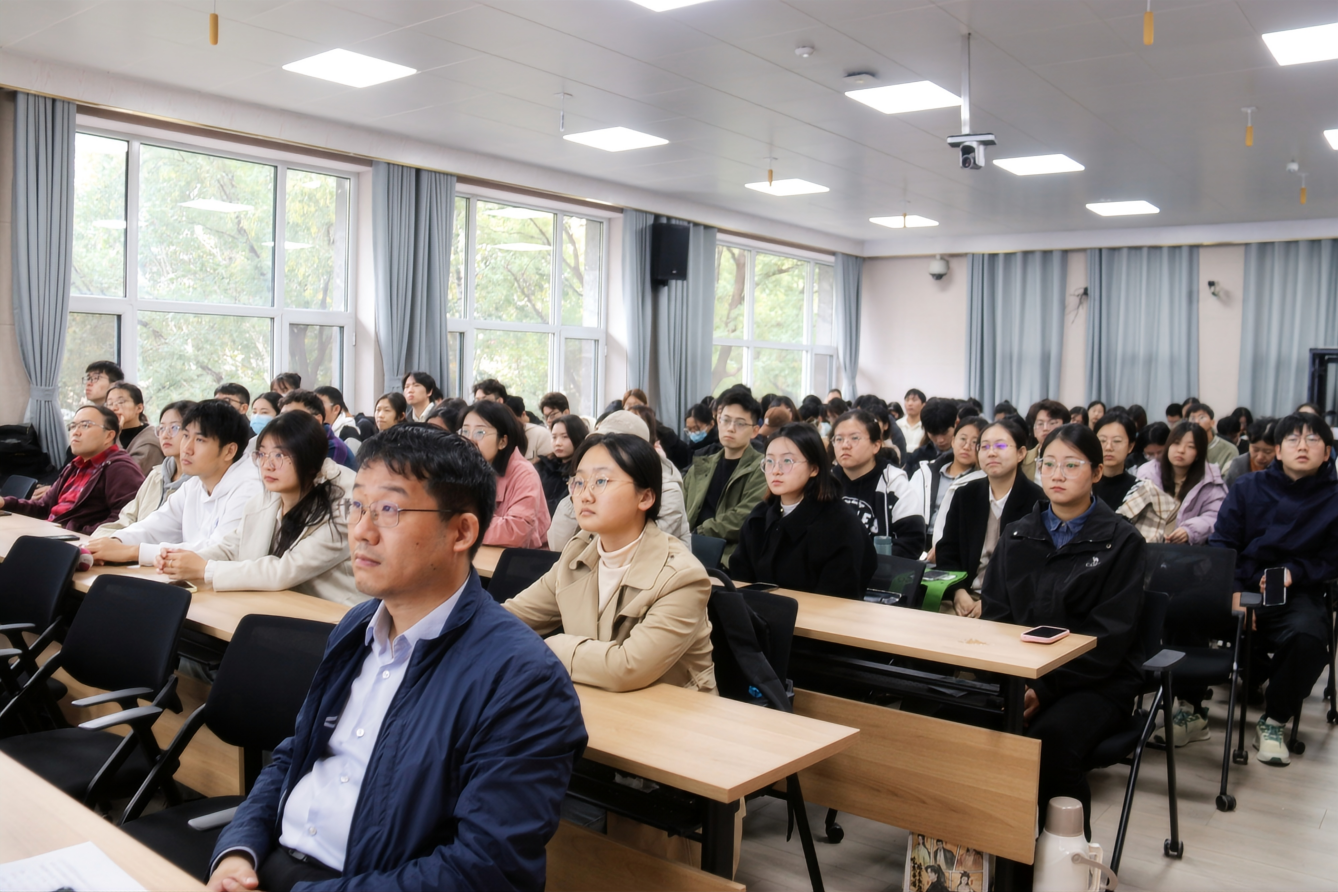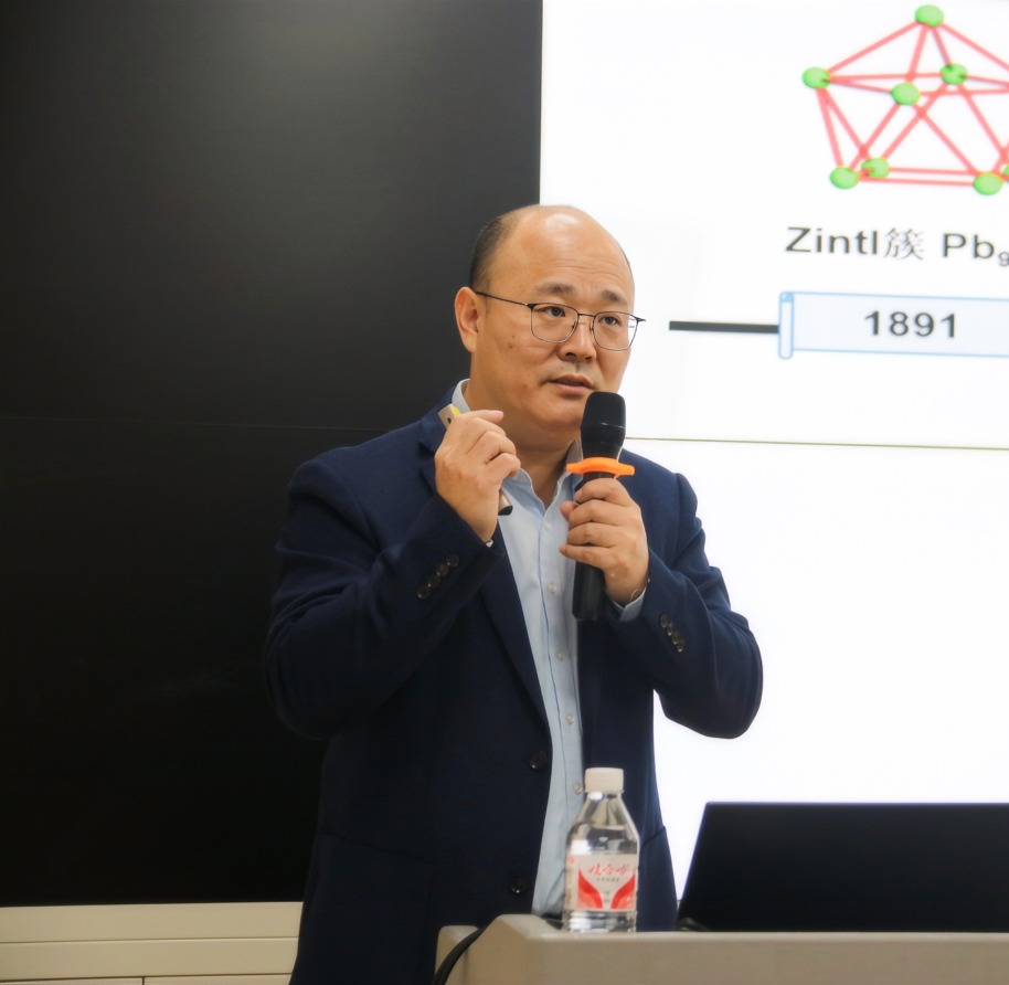 报告伊始,孙忠明首先介绍负价全金属团簇的研究背景和发展史。接着,他指出发展主族团簇的合成新方法,不仅涉及前瞻性的科研理念,还结合了经典的化学键理论。随后,孙忠明详细介绍了金属-金属键、具有金属-金属键团簇合成的发展历程和面临的挑战及工作中突破经典合成方法限制,聚焦Zintl团簇合成中的关键科学问题。最后,孙忠明深入浅出地讲解了其课题组近年来在类富勒烯金属团簇、无机三明治团簇、全金属团簇的组装等方面取得的最新研究进展,并与广大师生分享了科研思路与理念。报告结束后,与会师生踊跃提问,孙忠明对在场师生提出的相关问题给予了耐心细致的解答,现场气氛热烈。本次学术报告不仅让学院师生对主族团簇化学的认识更加深入,同时有效开拓了学院师生的学术视野,激发了学院师生的科研热情。