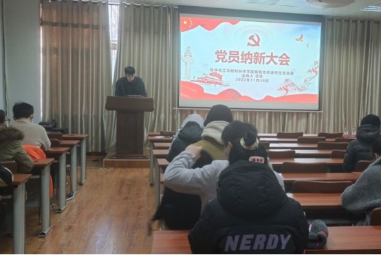 大会的第一项工作:纳新大会。会议在激昂的国歌中拉开序幕。两名同志郑重地宣读了《入党志愿书》,向大会汇报了自己对党的认识、入党动机和现实表现。入党介绍人分别介绍了刘钰、孙文斌在培养考察期间的思想和工作情况,肯定了优点,指出了不足,提出了希望。与会党员对是否接收两名同志为预备党员充分发表意见,经无记名投票表决,全票通过同意接收刘钰、孙文斌为中共预备党员。