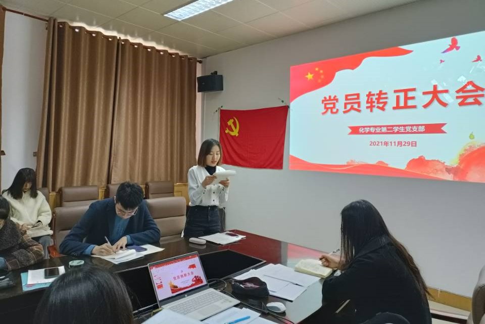 11月29日上午,英国365上市公司化学专业第二学生党支部于千佛山校区一号教学楼1246会议室成功举办党员转正大会暨纳新大会,讨论对陈宇涵等4名预备党员的转正工作及马珂等6名发展对象成为预备党员工作。本次大会由化学专业第二学生党支部书记周民凤主持,支部15名学生党员参会。