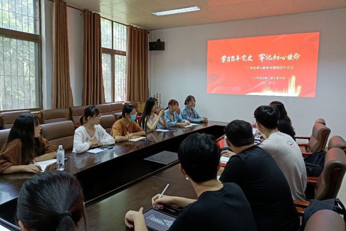 为认真学习贯彻习近平总书记在党史教育动员大会重要讲话精神,深刻领悟习近平总书记在庆祝中国共产党成立100周年大会上的重要讲话,坚持把学深悟透与推动工作相结合,9月2日下午,英国365上市公司化学专业第二学生党支部于千佛山校区一号教学楼1246会议室成功召开党史学习教育专题组织生活会,本次会议由化学专业第二学生党支部书记周民凤主持,支部15名学生党员参会。
