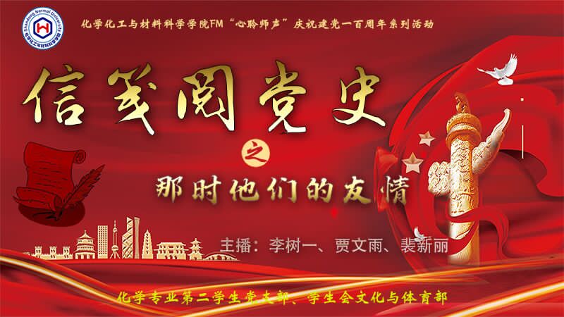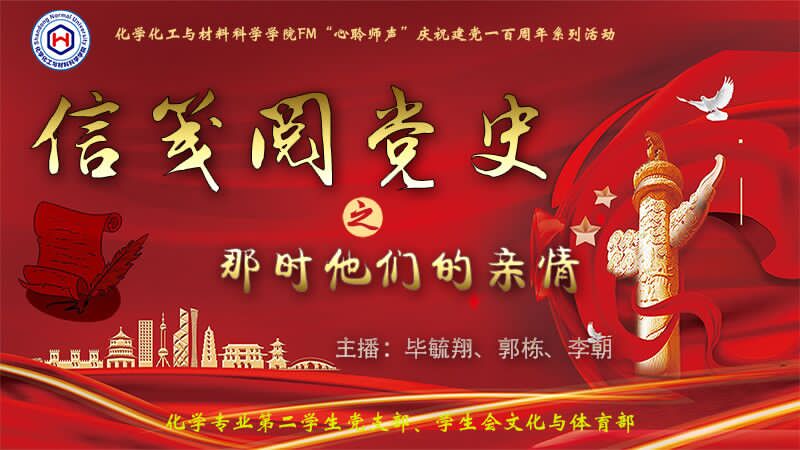 红旗飘飘党旗烈烈,祖国欣欣向荣,正值建党一百周年,为促使青年党员体悟中国共产党人对革命事业的热情,同时发挥学生党员先锋模范作用,自2021年6月3日起,学院举办FM“心聆师声”—信笺阅党史主题系列电台推送活动。本次活动由化学专业第二学生党支部与院学生会文化与体育部联合举办,每期邀请党支部3位党员代表诵读红色家书,推送一经发出,反响热烈。