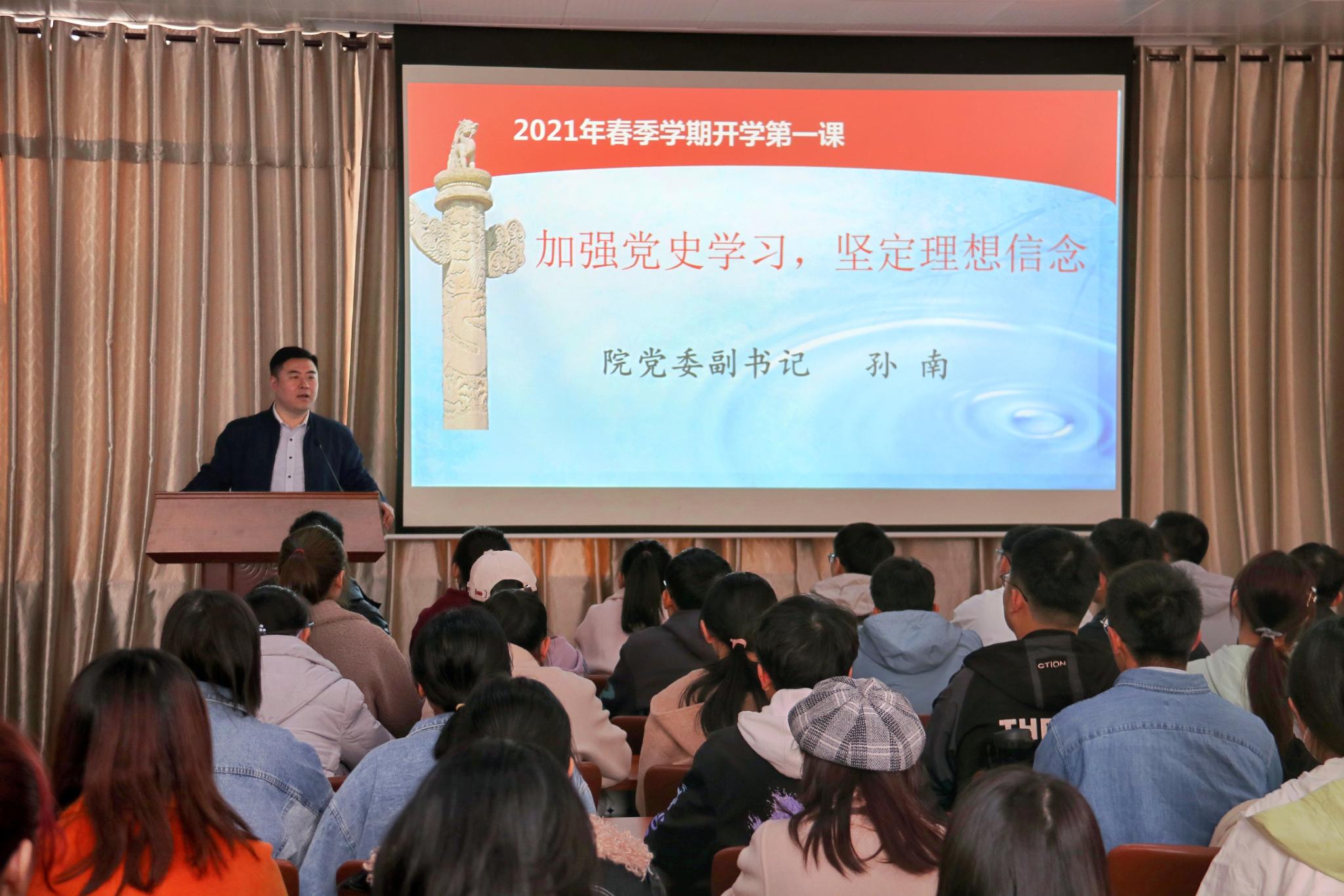 孙南从脱贫攻坚战取得全面胜利出发,深刻阐述学习党史的重大意义,号召同学们从历史中汲取前行的智慧和力量,鼓励同学们努力提升自身素质,积极向党组织靠拢。随后,孙南以历届党代会为主线,向同学们讲述党的历史概况及发展脉络,并结合自身的经历和记忆,介绍改革开放以来我国翻天覆地的变化,在与同学生动有趣的互动中,要求同学们对党的历史与现实做全面深刻的认知。最后,孙南呼吁同学们坚定理想信念,做新时代的追梦青年。希望同学们树立明确的目标,倍加珍惜大学时光,扎实学好专业知识,积极参与社会实践,争做担当民族复兴大任的接班人。
