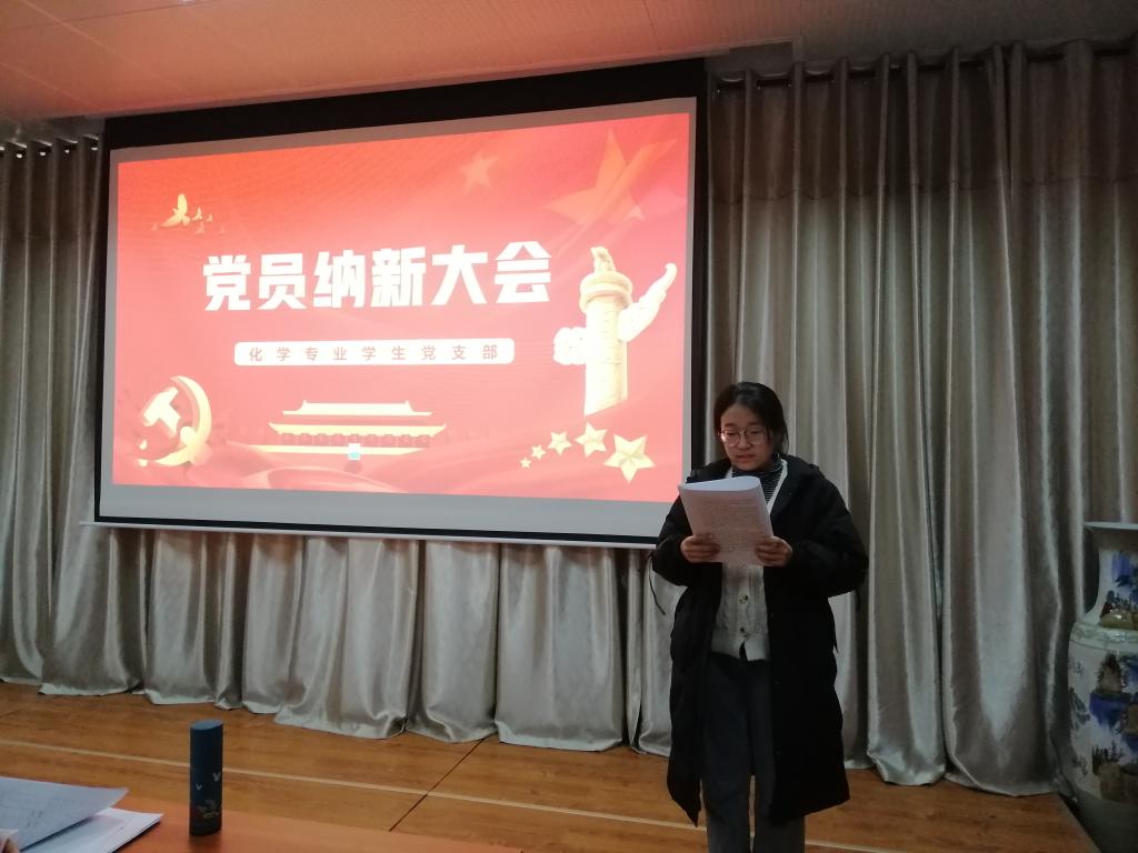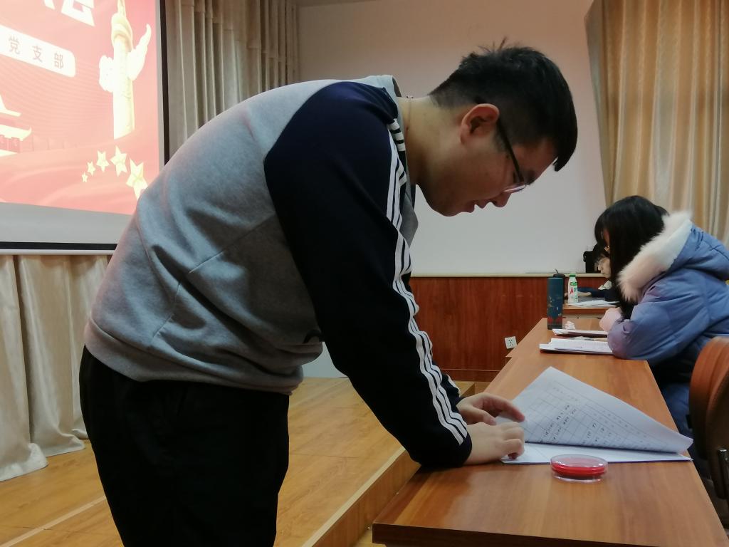 大会伊始,各预备党员向党组织提出申请,如实汇报自己在预备党员期间的表现,总结自己在思想、学习、工作及生活方面的进步和不足,表达了加入党组织的强烈意愿。经过正式党员的无记名投票,一致同意朱科霖等16名预备党员按期转为正式党员。接下来的党员纳新大会中,各发展对象依次起立宣读《入党志愿书》,汇报需要向党组织说明的问题,并从思想、学习、工作、生活等方面阐明强烈的入党决心,同时对现阶段自身存在的问题进行检讨。随后,第一、第二入党介绍人阐述培养考察情况,肯定各发展对象的优点,根据其的不足提出改进意见。全体正式党员采用无记名投票方式表决,一致同意吸纳田雨欣等33名同志成为中共预备党员。大会最后,毕毓翔在总结中强调全体正式党员和预备党员都应刻苦务实,努力学习党中央的理论知识,争做合格党员。