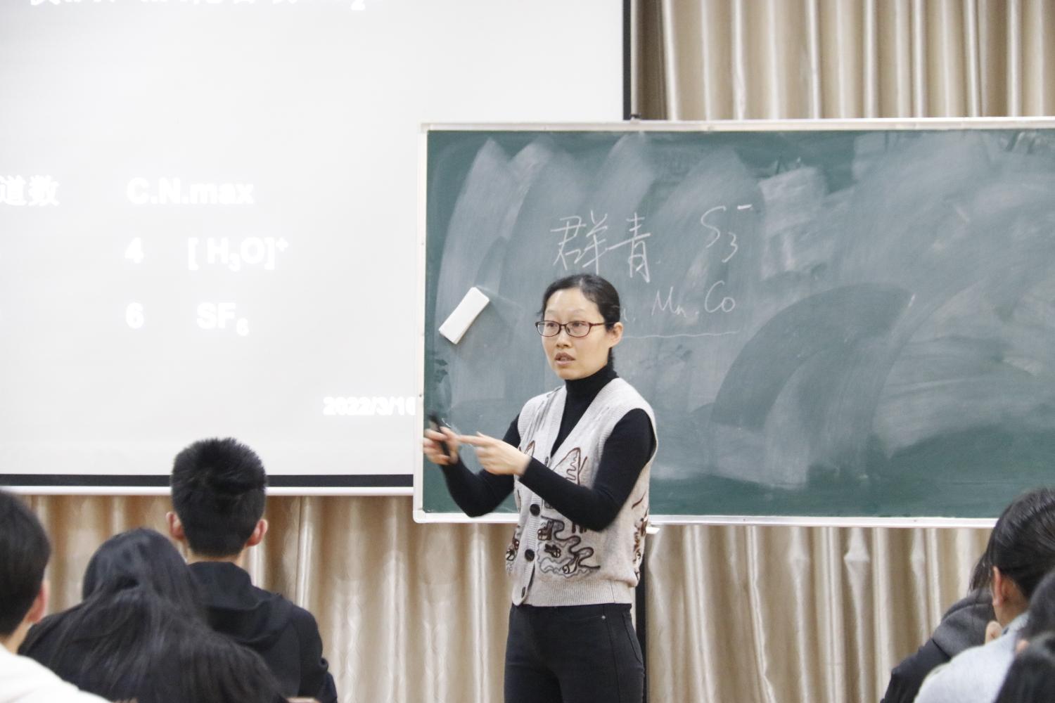 程军妍主讲《无机化学》第十三章氧族元素,在讲课过程中注重学习方法的教授,指出元素化学的学习更加要注重知识之间的连贯性,学习过程中要用竖线贯穿中心知识,再用横线穿珠引线联结小知识点构成知识结构图,使知识系统网络化。课堂上程军妍将理论联系日常生活生动地介绍了氧族元素的通性以及氧的特殊性,内容由浅及深,循序渐进,有的放矢;又从分布,制备,结构,性质及用途等方面系统介绍氧的单质,并对部分特殊现象做出理论方面的解释。与此同时,程军妍注重学生的理解学习,重视课堂氛围的活跃程度,她以问题为导向,抽丝剥茧、层层深入,引导学生进行深入地思考,从而对理论知识有更为深入的理解认识。