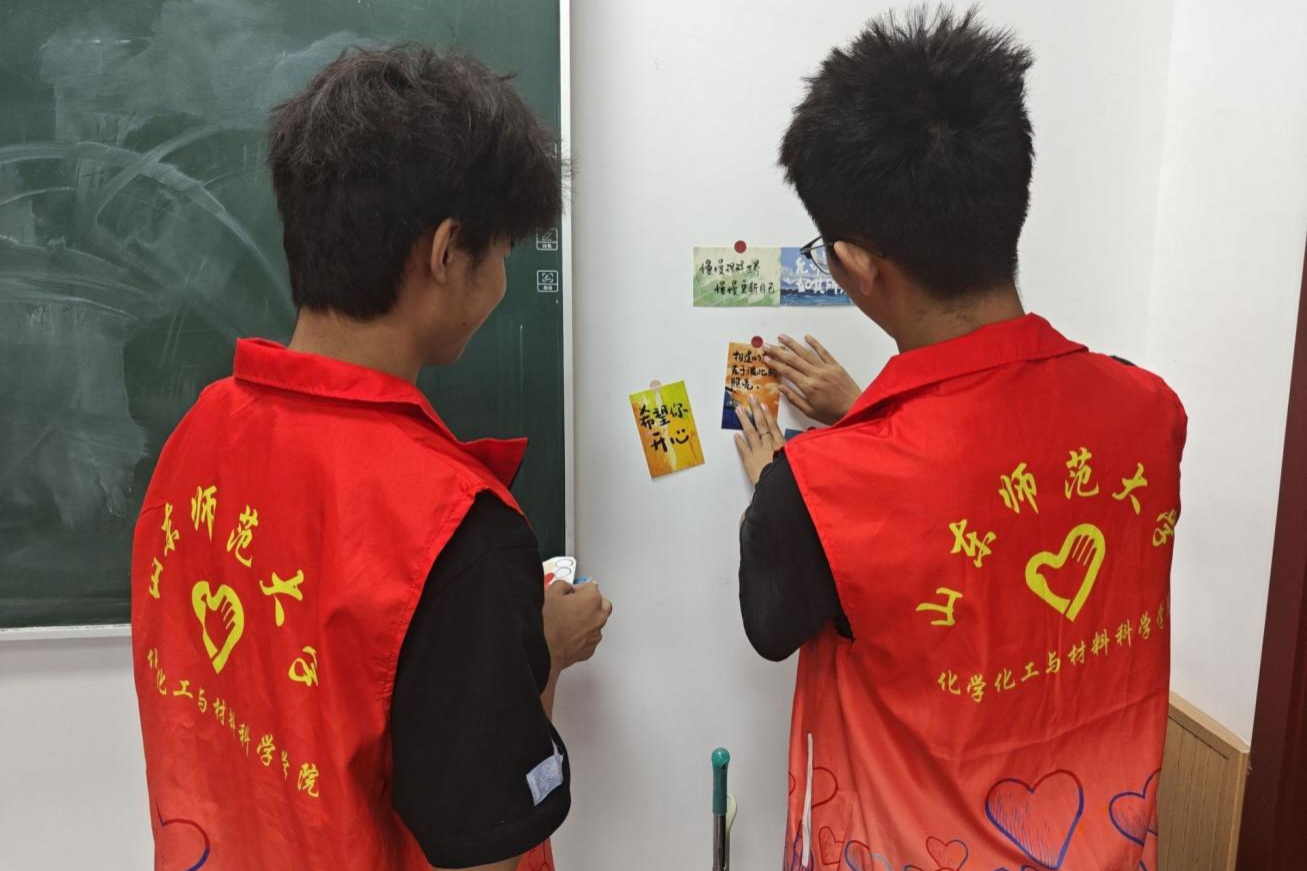 在本次5+活动中,志愿者们以服务他人、互帮互助为出发点,从餐饮、学习、住宿等多个方面开展志愿服务,倡导时代新风正气。在“礼貌乘车”行动中,志愿者们在班车发车区引导同学们文明礼貌候车、有序乘车,维护校园秩序,为乘车安全保驾护航;在“美化校园”行动中,志愿者们在教学楼周围清理卫生死角,擦拭石凳,有序摆放车辆,为师生学习工作提供便利;在“文明餐厅”行动中,志愿者们在红烛园协助餐厅工作人员收拾餐具,同时张贴海报宣传节约粮食和绿色环保理念;在“文雅宿舍”行动中,志愿者们在宿舍楼内张贴“节约用水”等宣传标语,促进了文明宿舍建设;在“明亮教室”行动中,志愿者们利用午休时间打扫教室地面、擦扫黑板、清理讲台杂物,为同学们营造了干净整洁的学习环境;在“考研助力”行动中,志愿者们在考研自习室内张贴考研标语,为师哥师姐加油打气,缓解他们的紧张情绪;在“清凉一夏”行动中,志愿者们为老师送去小风扇、冰凉贴和润喉糖,并通过帮助老师清洁空调等,为他们打造良好的工作环境;在“风暴瓶义卖”活动中,志愿者们将所学化为所用,通过义卖筹集善款,帮助需要帮助的人;此外“一对一帮扶”为即将毕业的志愿者匹配一帮一师弟或师妹,帮助他们完成未完成的小心愿的同时呼应了化学院一帮一的优秀传统;在“活力健身,快乐生活”行动中,志愿者们通过学习,带动老师共同练习八段锦,使老师在工作之余保持身体健康和身心愉悦。