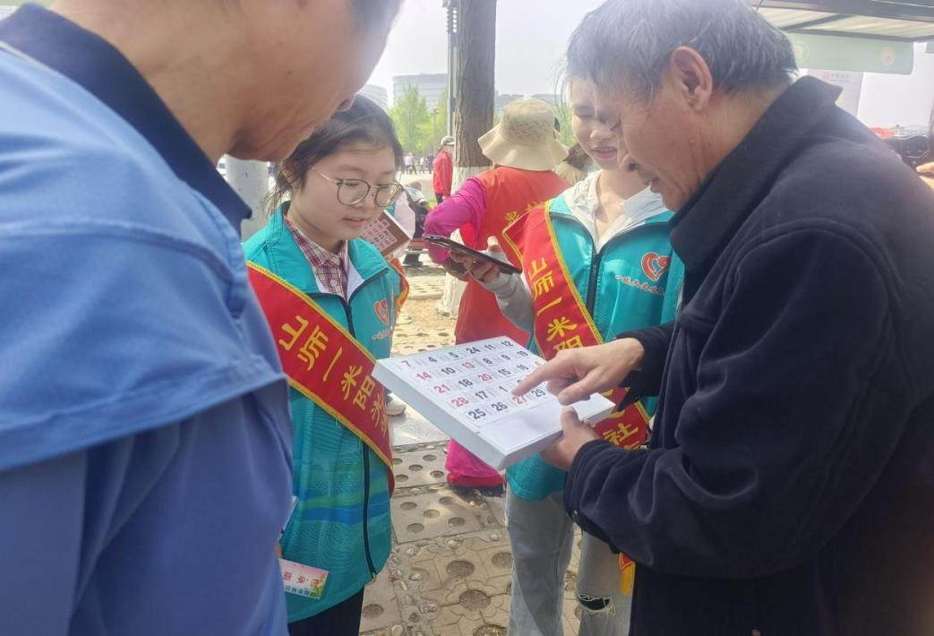 4月13日上午,为增强老年人的防诈反走私意识,强化老年人认知科普宣传,一米阳光爱心社在泉城广场泉城义工志愿服务站门前接力开展了“一城大爱暖泉城”志愿服务活动,以生动有趣的三句半、手指操等形式向过往的老人进行反诈反私以及认知科普宣传,简洁明了地向老人们传递知识,助力老人享受智慧生活。