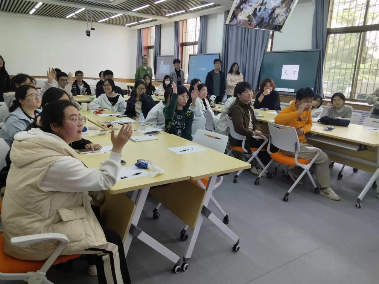 活动伊始,周长富围绕情绪调节这一主题,为学生们讲述情绪调节的方法,使学生们对情绪有了新的认知,提高了学生自我调节的能力。在交流探讨环节中,同学们积极表达自己在学习、生活中遇到的困难,周长富根据自身经验一一解答。在游戏环节中,首先将全部学生分为若干组,每组依次表演与情绪有关的成语,活动现场气氛热烈,欢声笑语不断;在组内的个人赛中,一人表演表情包,其余人猜测表情包内容。部分同学通过自己精湛的表演,完美表达出表情包所蕴含的情绪;也有同学天马行空的表演让人不禁捧腹。同学们配合默契,充分展现了大学生的青春风采。
