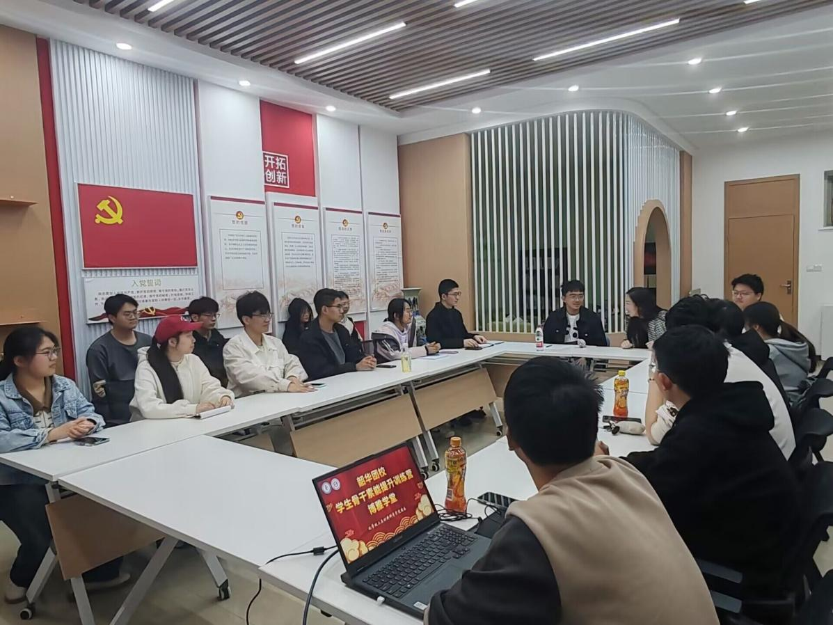 路桐轩以当好“服务员”,做好“宣讲员”为切入点,总结如何高质量做好班团、学生会等工作的经验,他认为自身应找准定位,做到事前请示、事后反馈,认真复盘,及时总结经验和不足。随后,他以学子宣讲队的亲身经历,与大家分享了四点感悟,一是思考听众是谁;二是讲解接地气;三是素材有共鸣;四是在宣讲中“自找苦吃”。他提到加入宣讲队不仅提升了自身的理论表达水平,而且磨练意志,使自我价值得到升华,实现全方面的锻炼。对于自身所获得的众多荣誉,路桐轩用“锻炼最多,受益最多”来概括,用“细节决定成败,把握每一次机会”与学员共勉。最后,路桐轩引用“与有肝胆人共事,于无字处读书”来评价在全国青马班的学习经历,借此表达对团员青年的祝愿,希望广大团员青年敢于挑战、乐于挑战、善于挑战,不断磨练意志品质,增强自身综合能力,努力成长为一名勇于挺膺担当的时代青年,为中国式现代化建设贡献一份青春力量。与会人员就学生骨干成长、工作技能培训、社会实践服务等方面进行了深入交流。