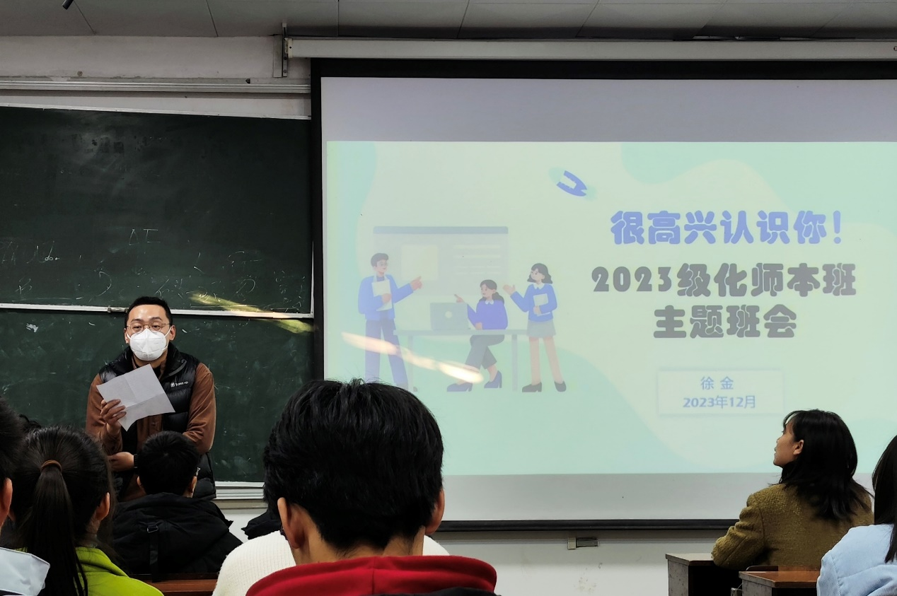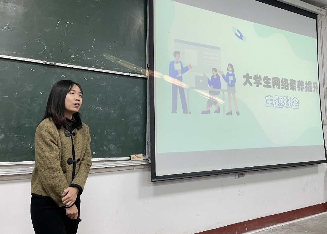 在班会中,徐金结合习近平总书记关于网络强国的重要思想,深入阐释了网络安全管理和网络文明建设的重要性和必要性,指出作为一名当代大学生,更应树立网络安全意识,为平安中国、法治中国建设贡献力量。徐金从如何辨别网络信息、区分真假新闻、网络素养的内涵、青年大学生的做法四个方面展开详细介绍。最后,徐金表达了对同学们的期望与祝福,希望同学们怀一颗家国赤子之心,不懈攀登,永葆好奇,携手并进,一路生花。
