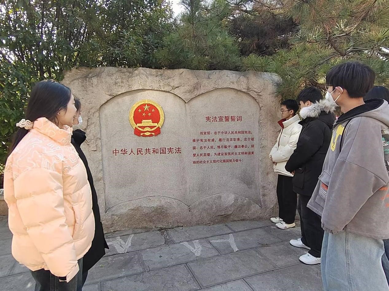 济南洪山公园是集普法教育与强身锻炼为一体的主题宪法公园,沿途建有以宪法为主要内容的石刻竖碑,同学们在登山过程中既锻炼了身体,又可学习了解我国宪法制定及完善的相关知识。同学们在实践中深刻学习贯彻习近平新时代特色社会主义思想,了解全面依法治国的重要意义,感受宪法在全面依法治国中的重要作用,以法制学习培育法治思维,推进法治建设。