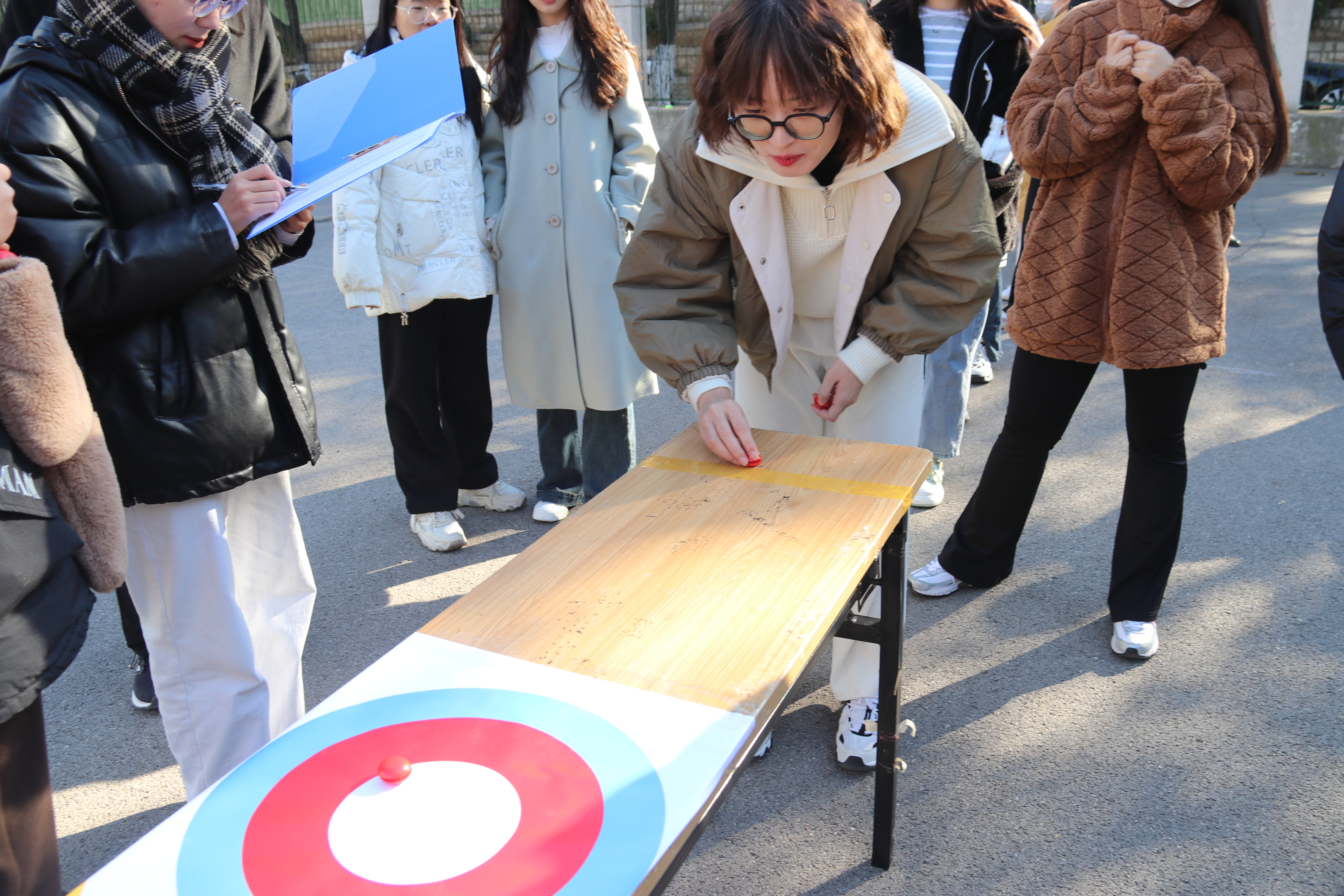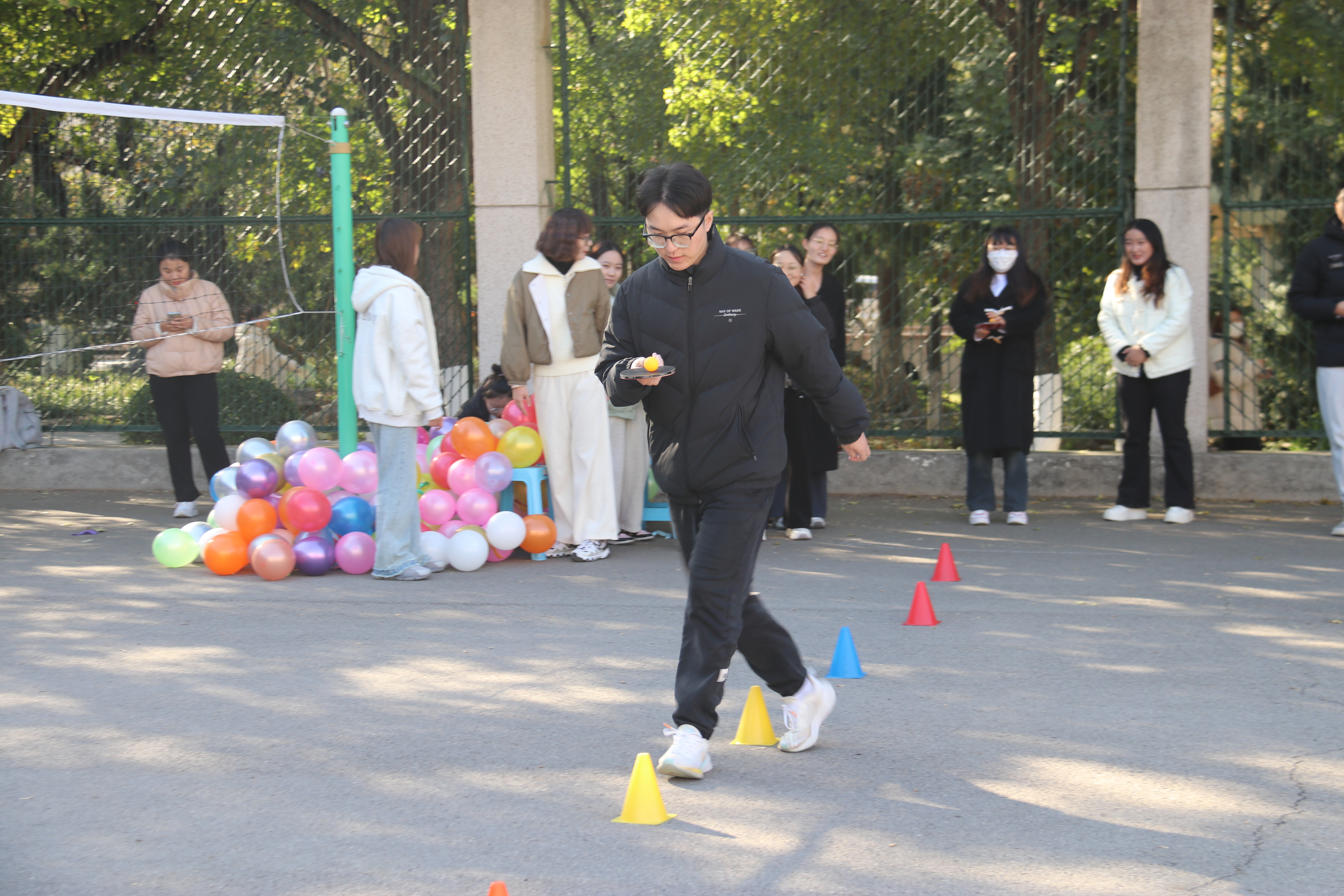 本次运动会分为个人赛和团体赛,个人项目包含桌上冰壶、一路球稳、包落万象和环环相扣,团体项目包含欢乐气球、超级大接力和拔河。在个人项目中,选手们各显其能,绽放风采。“桌上冰壶”的参赛者认真观测自己与得分区域的距离,精确把控推出“冰壶”的力度,瞄准、推球、滑弧线,一气呵成;“一路球稳”的参赛者目光紧随球拍上滑动的乒乓球,保持平衡的同时兼顾奔跑速度,稳中求胜,一张张因激动涨红的脸上,洋溢着他们全力以赴的青春豪情;“包落万象”的投手们屏气凝神,方向感和力量感紧密配合,正反投掷的规则更是让这一项目再添趣味;“环环相扣”的参赛者,全神贯注,沉着冷静,大环带动小环,先后完成呼啦圈和套圈挑战。经过一番激烈的角逐,最终迎来了本次运动会的团体赛阶段,“欢乐气球”、“超级大接力”、“拔河”三大项目既是智慧与体力的双重角逐,也是团队与协作的完美比拼。队员间分工明确、默契配合,相互加油鼓劲,场边观众也跃跃欲试,比赛现场更加趣味横生,掌声、笑声、欢呼声此起彼伏,充满了欢乐祥和的气氛。运动会过程中,同学们积极发扬“友谊第一,比赛第二”的原则,每一次奔跑与跳跃,每一滴汗水的洒落,都绽放着青春的活力,展现了我院研究生良好的精神风貌。