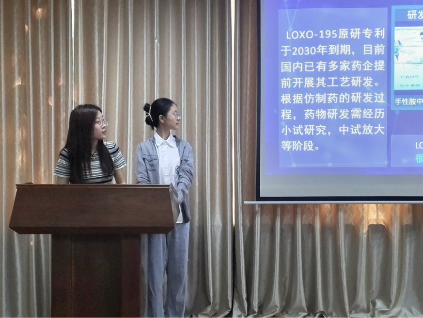 会议伊始,各项目团队汇报人依次上台,从研究背景、市场痛点、项目优势、创新点等方面入手,向评委老师们全方位介绍各自的项目,在各个团队讲演结束后,评委老师从专业角度对每个团队的参赛作品进行分析,详细指出PPT存在的问题及可以改进加强的地方,并提出建设性意见。其中“手护胺全——第二代TRK靶向抗癌药Selitrectinib中间体领军者 ”项目展示后,辅导员高老师对项目表示认可,并强调要注重分析市场现状,及时做出行业发展的预测;明确目前存在的痛点与项目的亮点;在讲述解决方案时,需逻辑清晰,语言流畅,具有合理性,也为更好的打磨团队项目提出了切实可行的建议。会议交流过程中,每一支团队都认真聆听,学习经验,以便于更好的改正、完善团队项目。