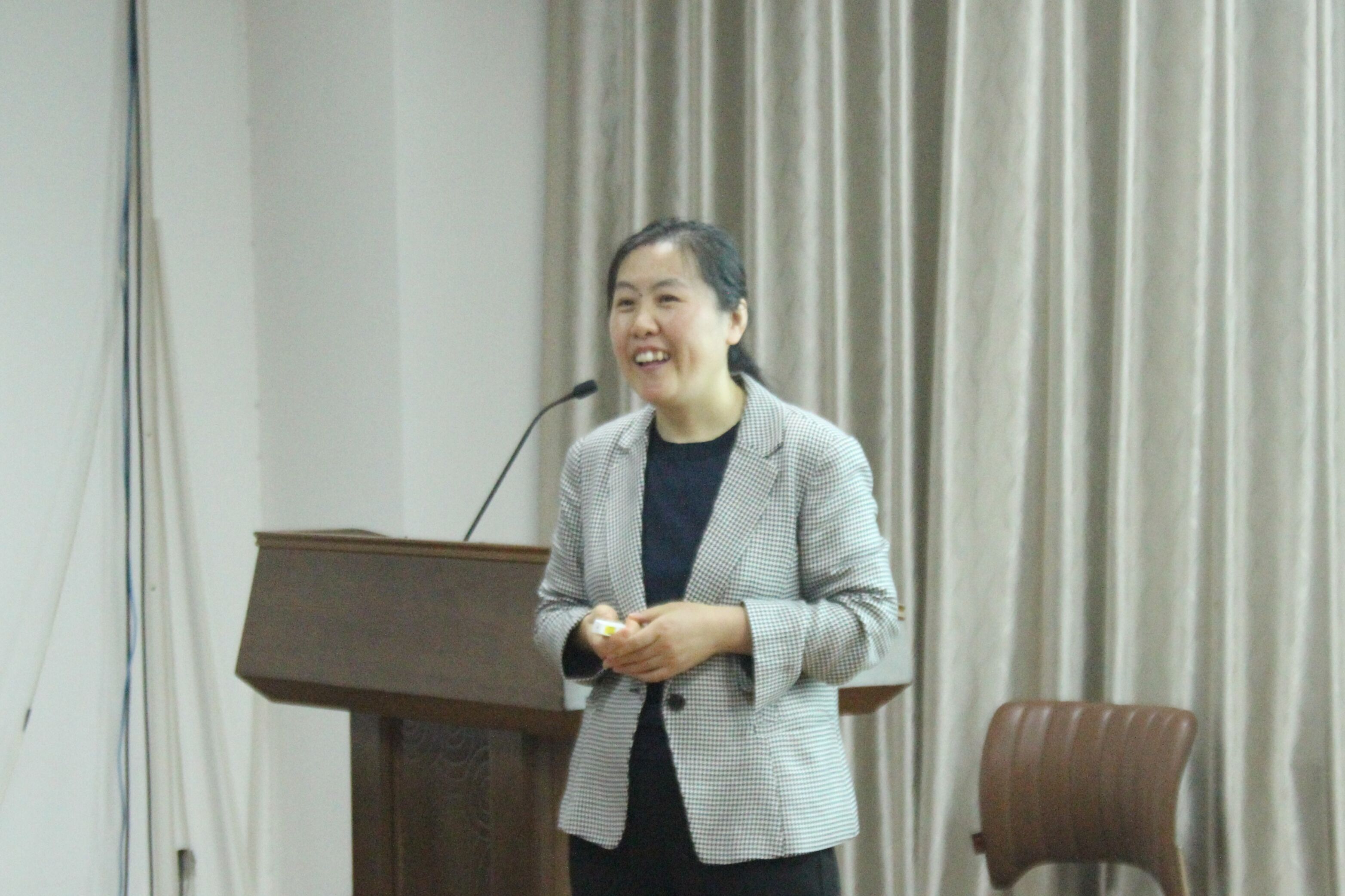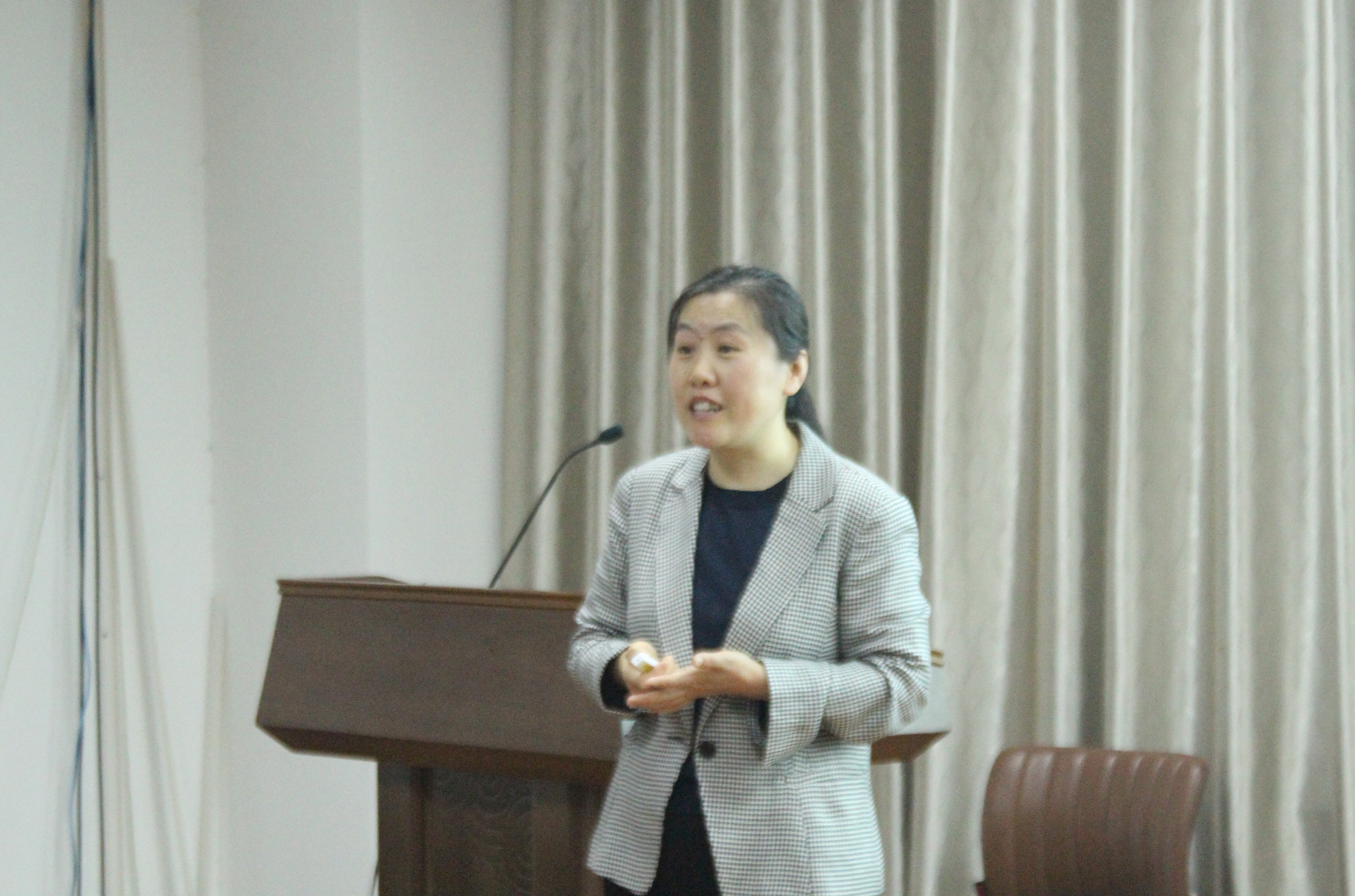 亓英丽老师先介绍了自己的工作经历和研究方向,亓老师主要从事科学教育文化、科学哲学与化学教学研究工作。出版著作4部,教材3部,在《课程•教材•教法》、《全球教育展望》等杂志上发表学术论文20余篇。主持和参与省部级以上项目10余项。获山东省高校优秀科研成果人文社科一等奖、三等奖、全国教育硕士优秀教师等荣誉。