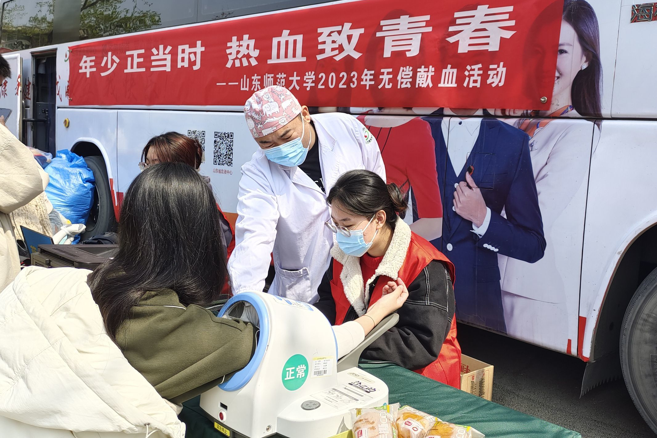 为了保证医疗临床用血的需要,缓解血库压力,同时弘扬大学生青年志愿者的无私奉献服务精神,并打造“奉献、友爱、互助、进步”的校园氛围,学院一米阳光爱心社于3月27至4月4日在千佛山校区桃李园餐厅门口组织开展献血活动。同学们积极响应无偿献血号召,自愿献出涓涓血液,汇成生命海洋。