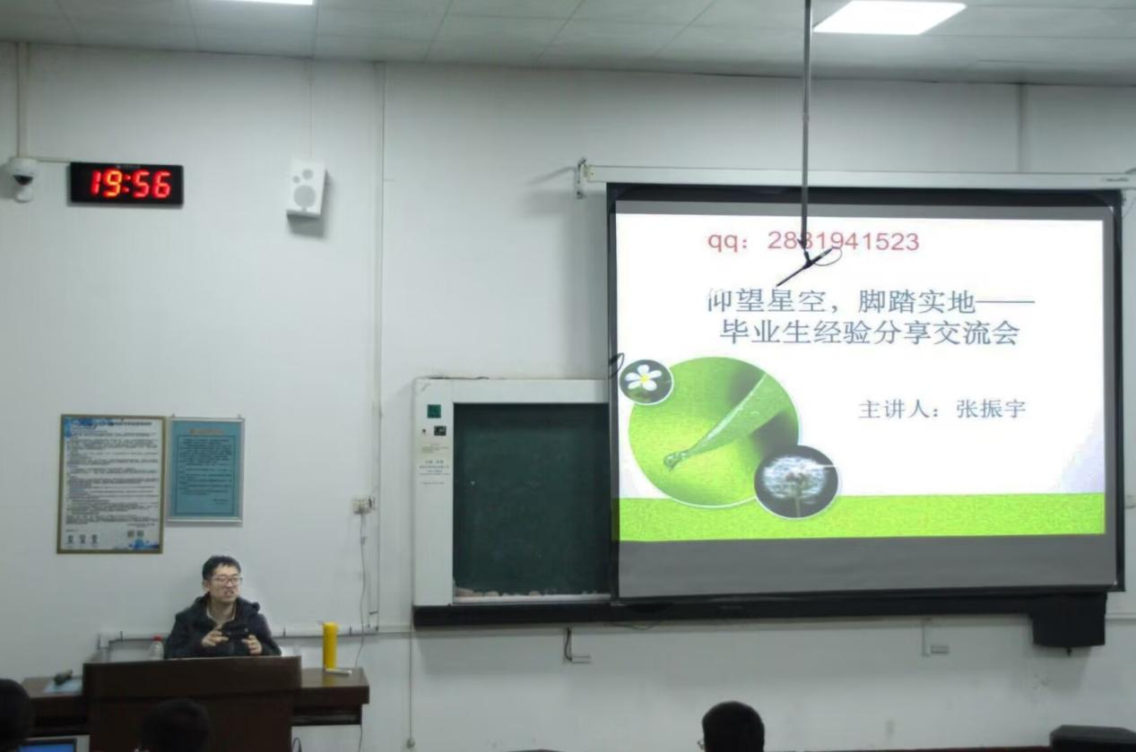 在报告会中,张振宇首先讲述在山师本科时期的学习成长经历。在校期间成绩优异的他,多次获得一等奖学金,并且积极参加各项校园文化活动,创立足球社团,担任学生会干部,这些经历都使得他各方面综合能力得到极大提升,为日后的创业道路奠定了基础。接着他分享了关于考研择校和读研的经验,在读研期间,他逐渐找到了自己的人生方向,并做出了人生规划,确立了之后的创业目标。最后他讲述了在踏入社会后为自己的创业理想坚持不懈,努力克服在创业过程中的一系列困难和挫折,并最终实现自己的创业目标的过程。报告尾声,同学们针对考研选择,创业途径等方面提出问题,张振宇逐一作出深入解答。
