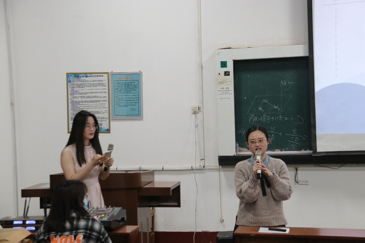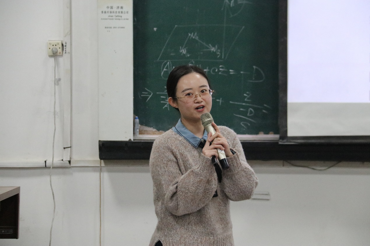 活动伊始,刘萌老师表示,比起老师,她更愿意以一个校友师姐的身份向同学们分享经验。她首先介绍了自己的科研经历,并将她在山师度过的十年春秋娓娓道来。一步步走来,别人眼中的“幸运”背后,是日复一日认真的积累。她指出,成功不是一蹴而就的,它往往建立在之前已经获得的成果之上,要认真做事,踏实做学问。针对大一大二同学对未来迷茫焦虑的情绪,她结合自己的经历指出要尽早为未来规划,一旦确定就要为之不懈努力。与此同时,刘萌老师也为同学们回答了提一些疑问。关于科研,她提到要重视研究内容的深度,也要注意研究领域的广度。关于考研,她提到大一大二能做的主要就是认真学习自己的专业课,提高自己的英语水平。刘萌老师的讲述风格平易近人,生动有趣,同学们欢声笑语不断。最终,随着快门声响,活动落下帷幕。