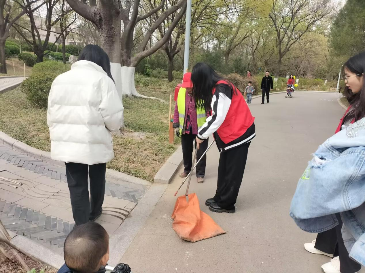 下午两点,团支部全体同学们于泉城公园南门集合,公园负责人向同学安排具体工作,提醒注意事项,包括赏花季植被看护、捡拾落叶垃圾、规劝不文明行为、清扫道路等。