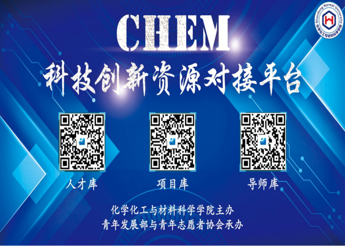 二十大报告中,习近平总书记再次强调了科技进步和创新意识在国家发展和人才培养中的重要性,提出“必须坚持科技是第一生产力、人才是第一资源、创新是第一动力。”为进一步响应二十大号召,开展学院“青椒计划”,搭建科研导师与学生之间沟通的桥梁,近日,学院创建了“chem科技创新资源对接平台”并投入使用。
