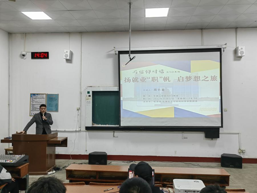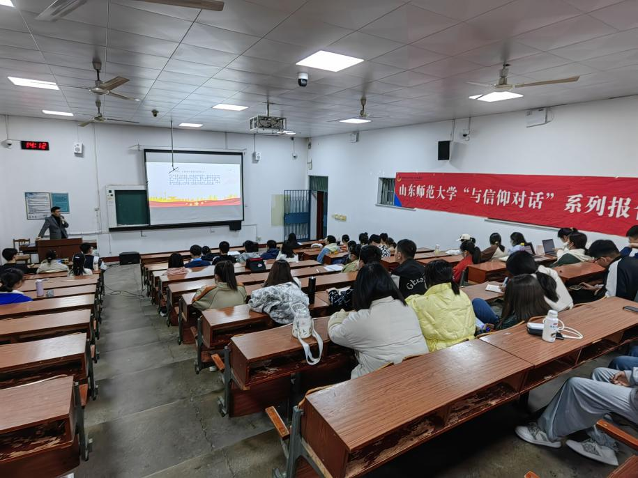 为了帮助当代大学生树立良好的世界观、人生观、价值观,坚持正确的信仰,11月17日下午,校团委和学院团委在千佛山校区教学一楼1215教室联合举办了“扬就业’职’帆,启梦想之旅”与信仰对话第104期主题讲座,本次讲座由2020级辅导员周长富老师主讲,全院约100名学生参加。