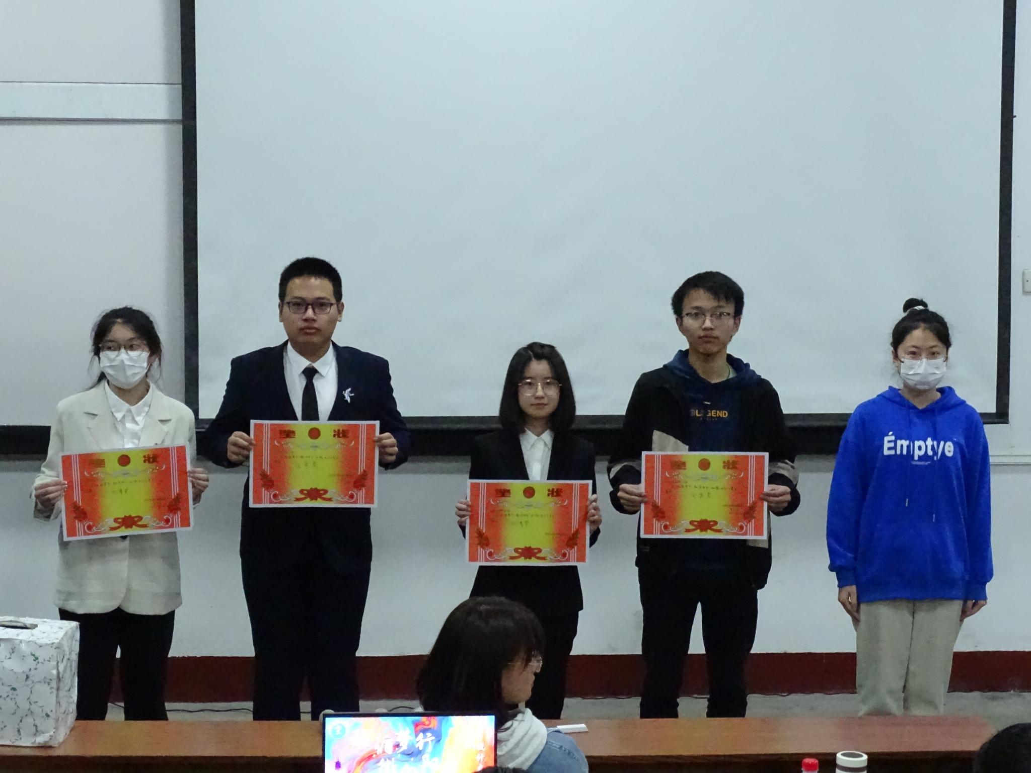 大赛伊始,一段班徽展示视频为在场观众展示了所有班级的班徽。水墨为底,妙笔丹青,一枚枚精美的班徽,是文字与图案的完美结合,其简明扼要的设计理念,风格多样、别出心裁的作品,各具特色的班徽彰显了各班级的个性特征和班级文化,极大地发挥了各班同学的集体智慧。其中,2021级化学五班以新闻联播的形式介绍班徽,“我们要以青年人的时代责任为出发点,设计化学五班班徽,要时刻牢记总书记对青年人的嘱托。”别具一格的创意形式激发了观众兴趣,“心有猛虎,细嗅蔷薇”,他们相信终会冲破束缚,终有逐浪新生;2021级化联培班以班徽发布会讲述班徽故事,展现班级风采,其班徽选用了中国与加拿大两国国树的树叶,寓意中加文化融合,也代表着他们未来将在未来大洋彼岸的学习中踔厉奋发,百尺竿头;2021级化工班以二人相声的表现形式展示班徽细节,以星月为底,随流星划过,两位主讲人一问一答,语言风趣幽默。随后,趣味套圈游戏和抽奖环节将全场气氛推到高潮。2022级化工班以周公的故事开场,结合话剧表演,引出班徽设计的创意,烧瓶承载着帆船在知识海洋中航行,寓意未来的化工班勇往直前,迎难而上,笑面人生。最终,2021级卓越化学班和2022级化工班以其独具匠心的设计理念和寓意别致的主题内涵脱颖而出,摘得桂冠。本次班徽设计大赛在歌舞中圆满落幕。