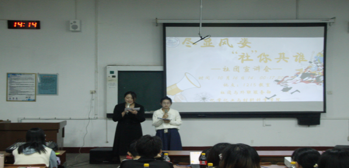 为增进2022级学生对学院社团的了解,给社团展示和宣传提供一个机会和平台。近日,学院社团与外联服务部于1215教室举办“尽显风姿,‘社’你其谁”社团宣讲活动。活动由侯利娟、武俊彤担任主持人,学生会部长、副部长作为特邀嘉宾出席,学院全体22级学生积极参与其中。