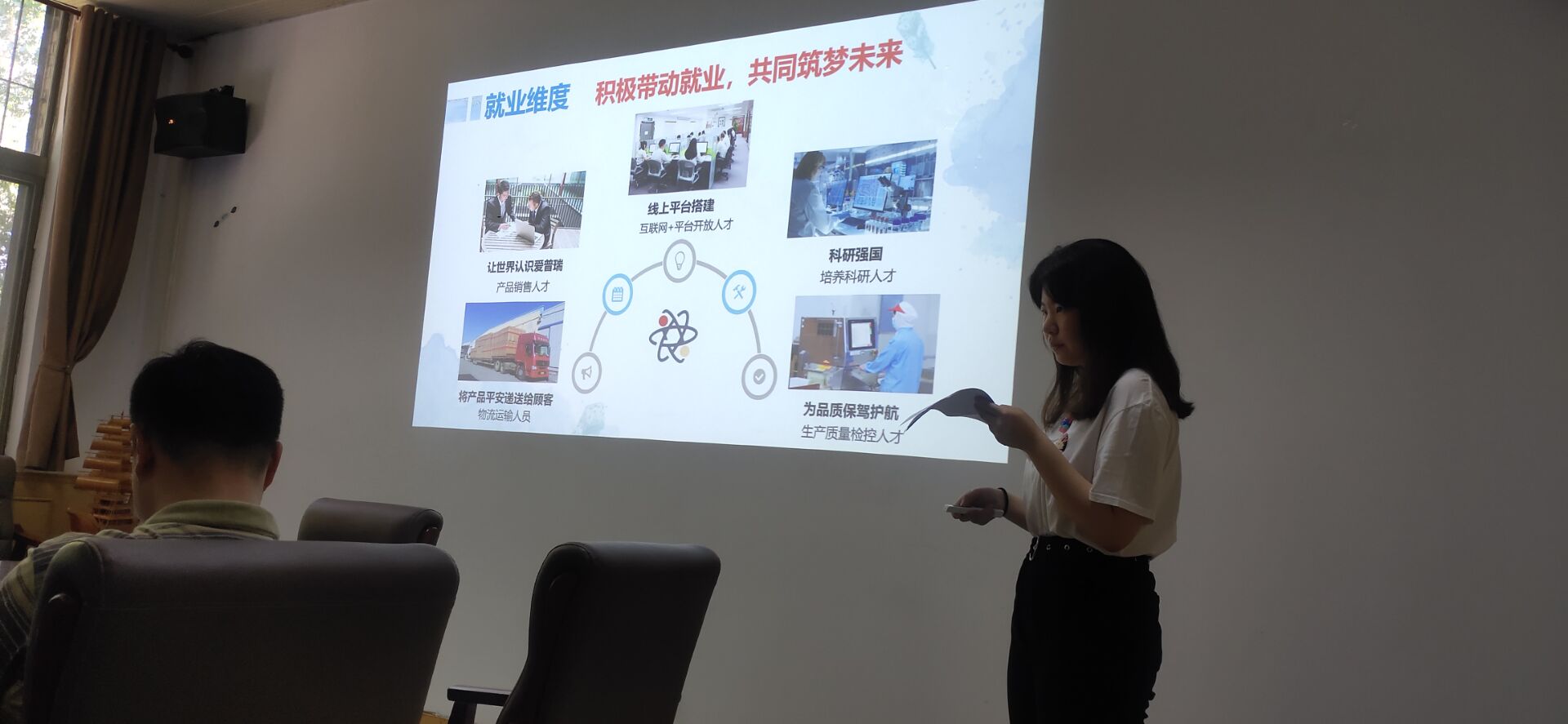 本次互联网+报名项目交流分为三部分,先由参赛选手进行产品阐述,专家老师再从参赛者阐述或产品的一些缺漏方面提出建议,进行交流。产品阐述要求项目负责人运用PPT讲解、视频展示方式进行自己产品的阐释。随着一张张幻灯片的播放,参赛者的精彩讲解,产品涉及方面的市场分析、痛点分析及产品的原理、优势后,参赛者通过专家给出的一些建议对自己的产品或者阐述进行反思与改进。优化自己的产品和项目。选手们的成果展示及积极反应和专家的专业指导将本次活动的效果做到了最大化,在一个个疑问与建议中顺利结束。