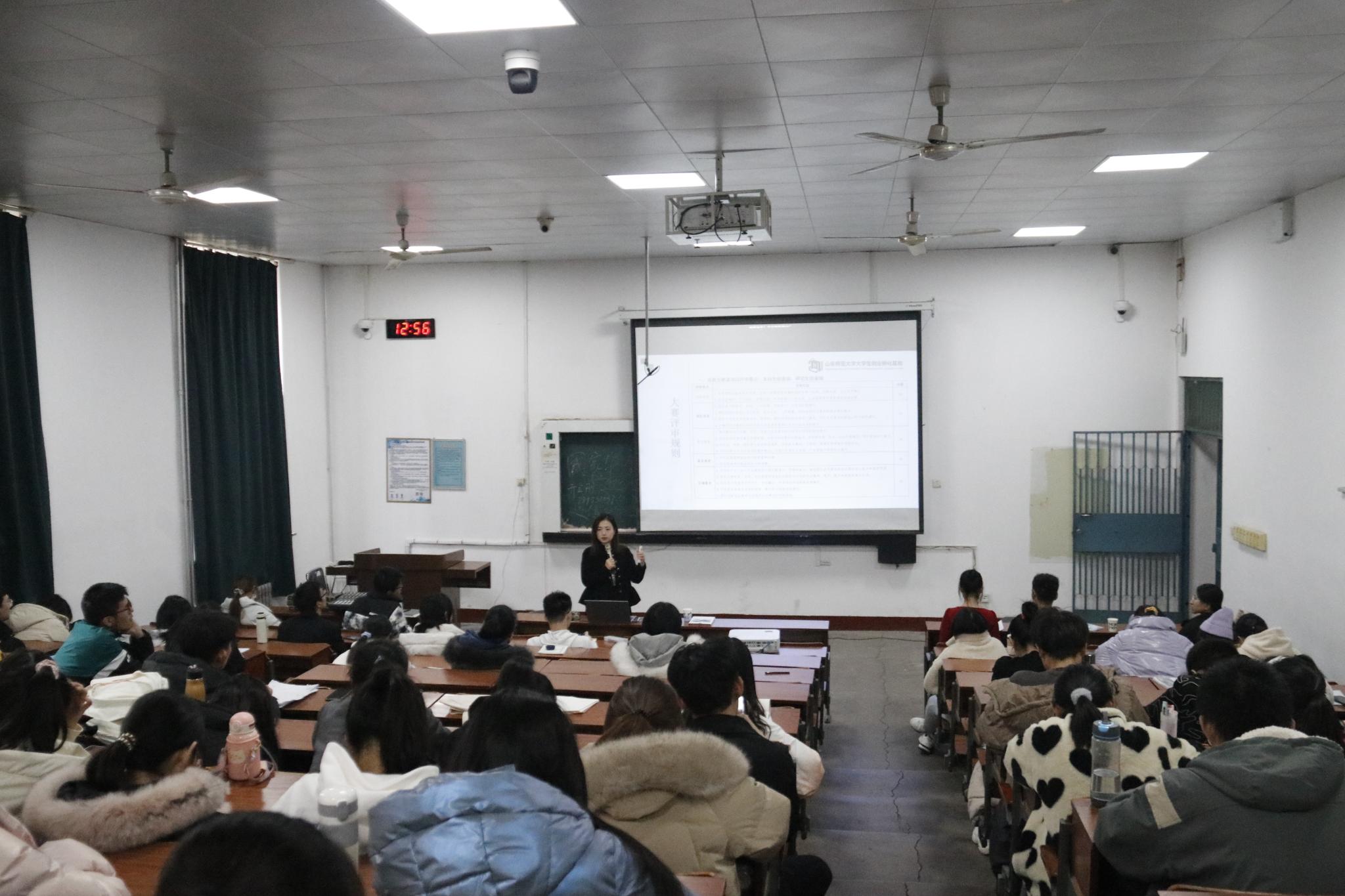 活动开始,高艳丽首先介绍了由教育部主办的中国国际“互联网+”大学生创新创业大赛。她提到“互联网+”是唯一可以参与到学校评估的奖项,对于学校的发展极其重要。同时也可以帮助同学们获得保研资格、创新创业学分以及奖金等,是同学们发挥自己创新创业能力的良好平台。她指出“互联网+”有多个赛道,适合同学们参加的主要有高教主赛道和红旅赛道。高教主赛道的项目要求有较好的创意和较为成型的产品原型或服务模式,红旅赛道的项目应在推进革命老区、贫困地区、城乡社区经济社会发展等方面有创新性。高艳丽又介绍了“互联网+”的评审原则,帮助同学们有方向地准备“互联网+”比赛。随后,高艳丽介绍了“挑战杯”全国大学生系列科技学术竞赛。“挑战杯”包含两个并列赛事,分别是“挑战杯”全国大学生课外学术科技作品竞赛和“创青春”全国大学生创业大赛,奇偶年轮流举办。高艳丽鼓励有意向参与创新创业比赛的同学们积极联系导师,早做准备,争取早日取得满意的成绩。