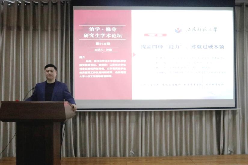 孙南首先要求广大研究生要做到“认清自己”,要对自身有着正确的定位,更要有信心、动力和追求。他结合自身经历向同学们分享“知识决定眼界,眼界决定高度,高度决定未来”的感悟,希望同学们在研究生阶段能够追求身心健康和学业发展完美结合的理想状态,志存高远,永攀人生高峰。随后,孙南从“学习能力”、“执行能力”、“坚持能力”和“自信能力”四个方面进行分享。他认为“学习能力”是指“人们的自我求知、做事、发展的能力,是其他能力的基础和驱动力”,并指出在研究生阶段同学们需要具备的学习能力主要包括“查阅文献的能力”、“发现问题的能力”、“总结归纳能力”和“组织实施能力”等。希望广大研究生能够珍惜并把握好美好的校园学习生活,不断提升独立解决问题和获取新知识的能力。对于“执行能力”这一方面,孙南认为“执行力”和“行动能力”是至关重要的。他指出执行力就是一种“把想法变成行动、把行动变成结果”的能力,但是鉴于执行能力强弱和执行效果因人而异,同学们要结合自身特点主动去提高执行能力。同时,还强调学习能力是执行能力的基础,希望同学们能够在不断学习的过程中实现执行能力的提升。对于“如何坚持”这一问题,孙南认为“目标明确”、“肯于吃苦”、“沟通协作”和“方法得当”是有效提升“坚持能力”的途径。与此同时,他结合俞敏洪和马云的事例来向同学们传授“坚持就是胜利”的道理,指出自信来自于学习、内心、实践和认可,自信既是一种能力也是一种对自我认可的体现,希望同学们能够相信自己,也对自己未来的发展充满信心。最后,孙南对本次讲座进行总结,希望同学们在学习和实践的过程中切实提高各项能力,练就过硬本领,并祝愿同学们学有所成,幸福生活。