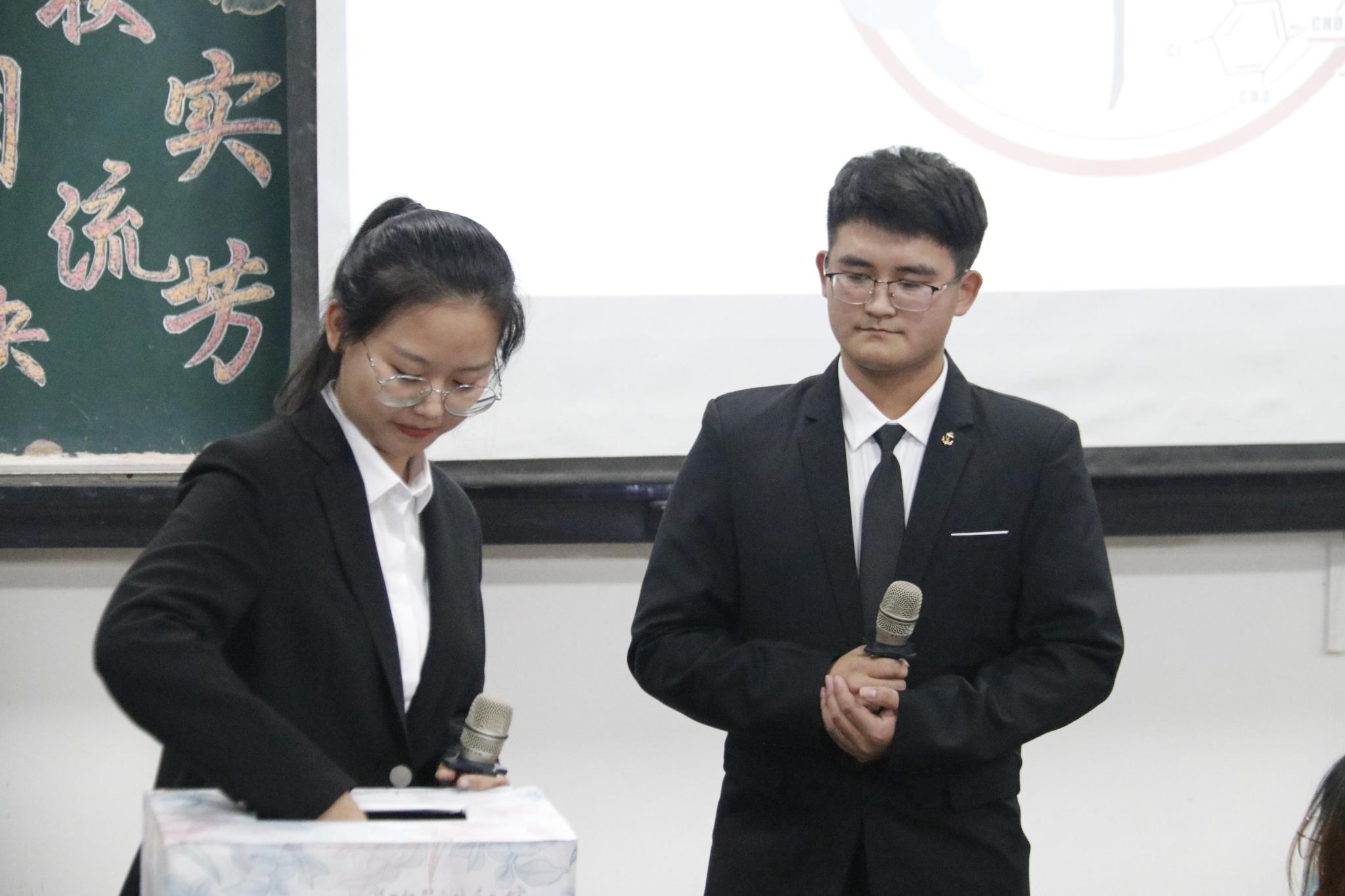 比赛在6:30正式开始,一切如约而至,全场气氛在开场视频的渲染下轻松而温暖。大会分为各班级班徽介绍,答辩,抽奖,游戏互动四个环节。各班代表根据赛前抽签顺序上台演讲,并从设计理念,设计过程等多方面对班徽进行详细讲解,讲解方式创艺百出,生动有趣。他们将丰富的灵感与专业特色完美结合,辅以独特的班级元素,创造出凝聚着智慧与想象力的班徽作品。其中,2020级卓越化学班以幽默的讲述方式,赢得全场的掌声;2020级化学三班以产品发布会的方式,从班徽的的升级和产品转型等方面介绍了元素丰富的班徽。随后的游戏环节更为精彩,并邀请到辅导员赵晨老师与同学们一起做游戏共度欢乐时光。紧接着,2021级化工二班以宇航员登月的独特故事,吸引了全场人的注意,展现出班级独特风貌。最终,2020级卓越化学班和2021级化学工二班,以别致的设计内涵摘得桂冠。至此,本次班徽设计大赛圆满落幕。